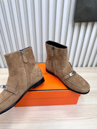 HM 25 Kelly Buckle Ankle Boots Tan Silver Suede 513079