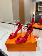 HM Joy 90mm Heeled Sandals Red Flat Cowhide 294922