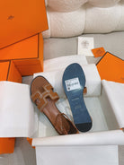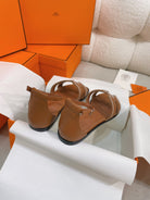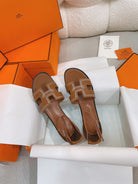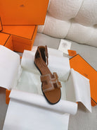 • Material: Sandal in Clafskin with straight cut edges, "H" cut-out detail and thin ankle strap.