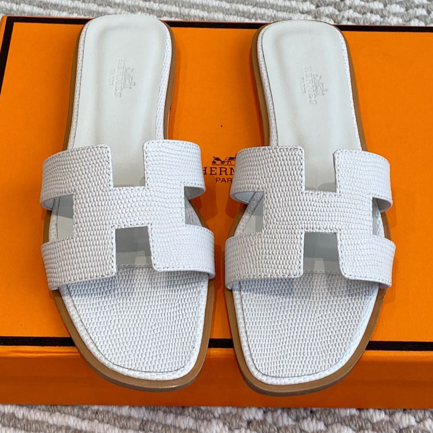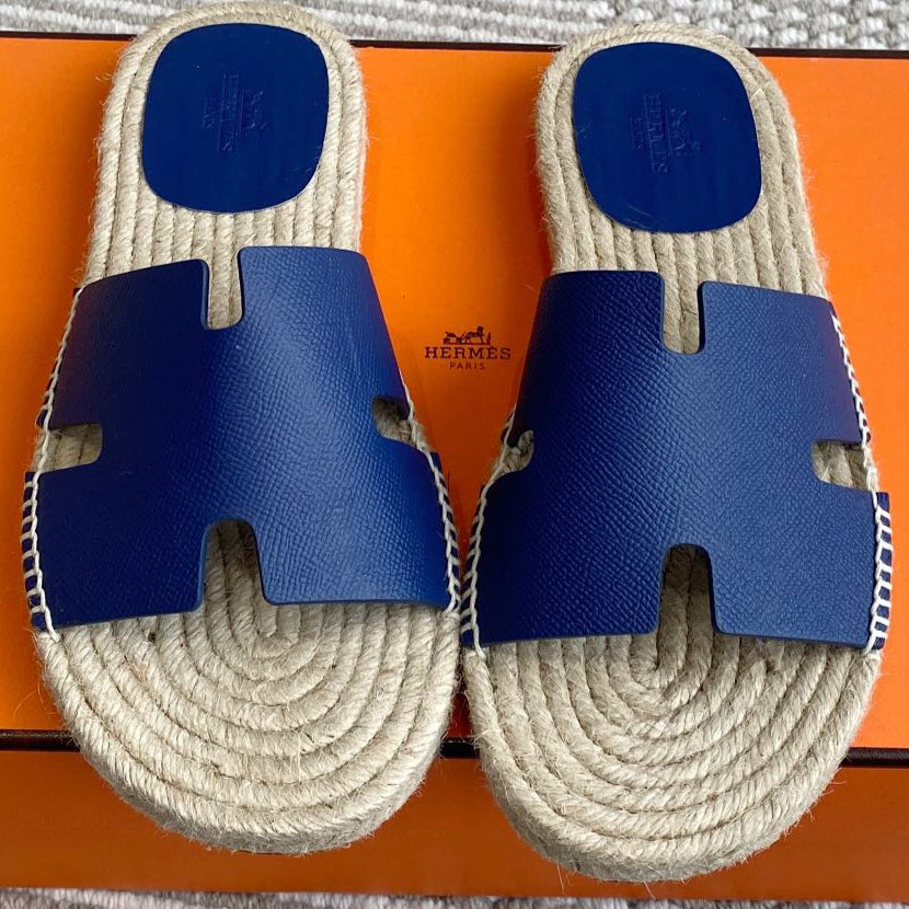 HM 25 Oran Sandal White Calfskin Blue Denim