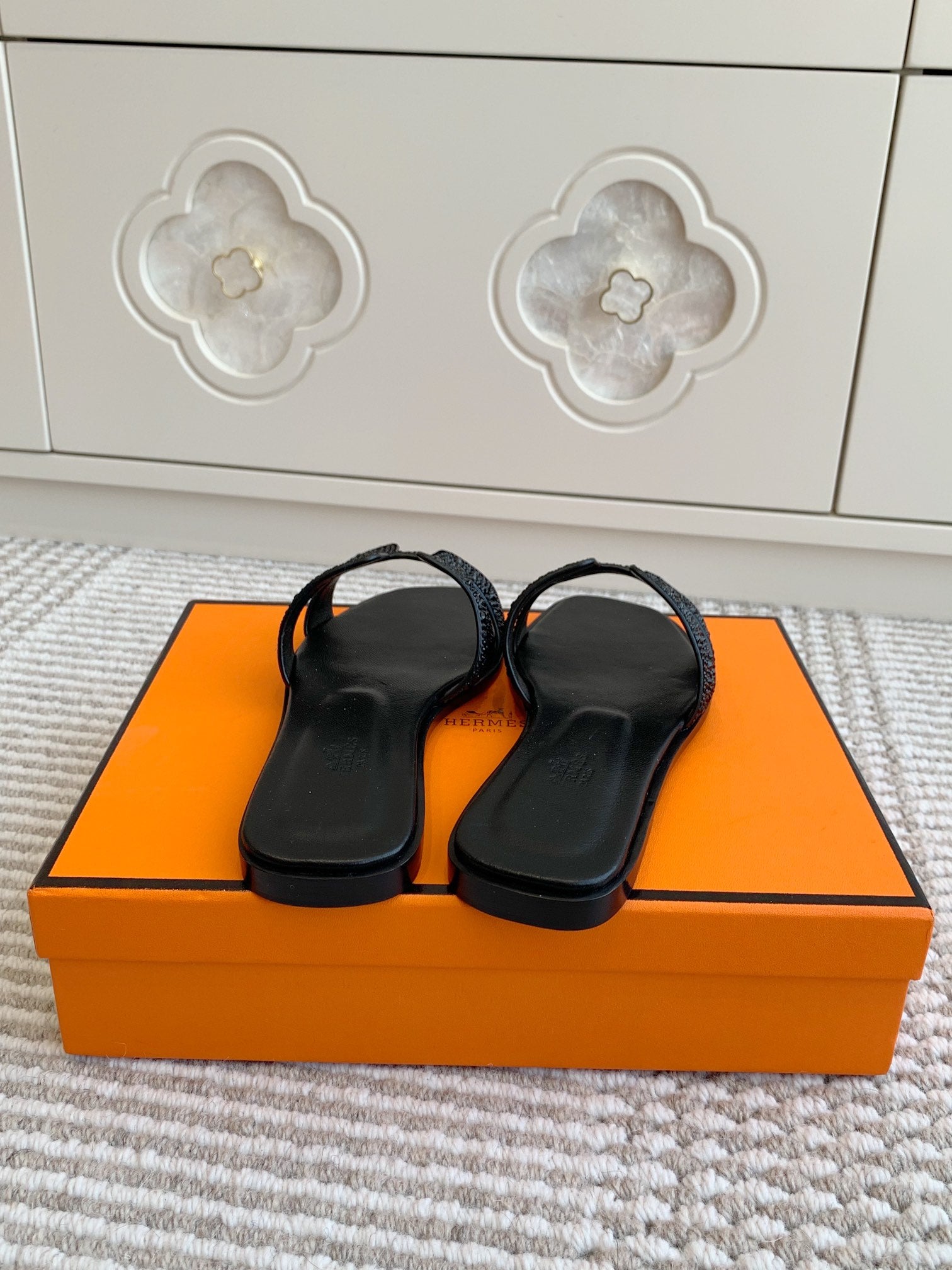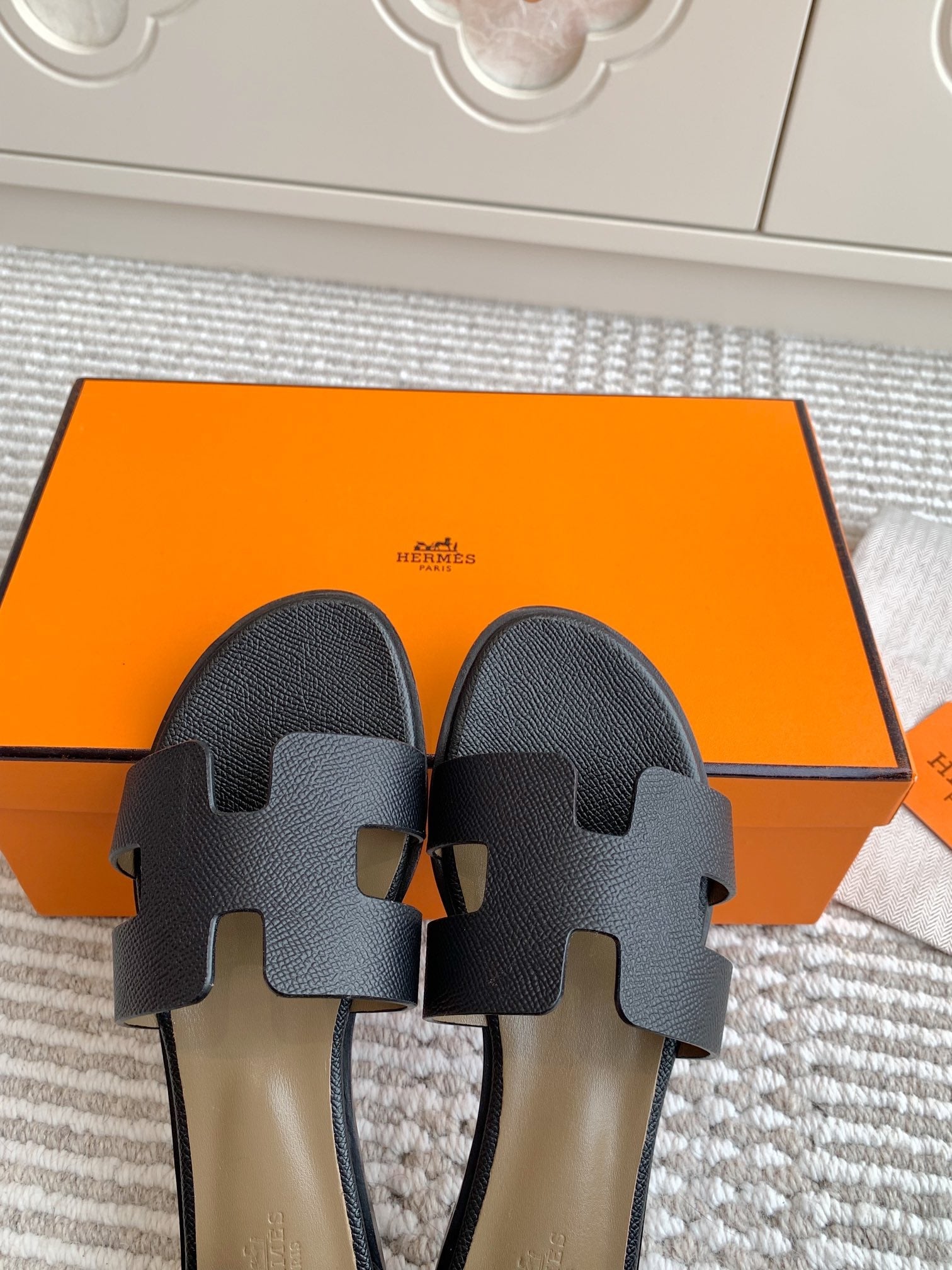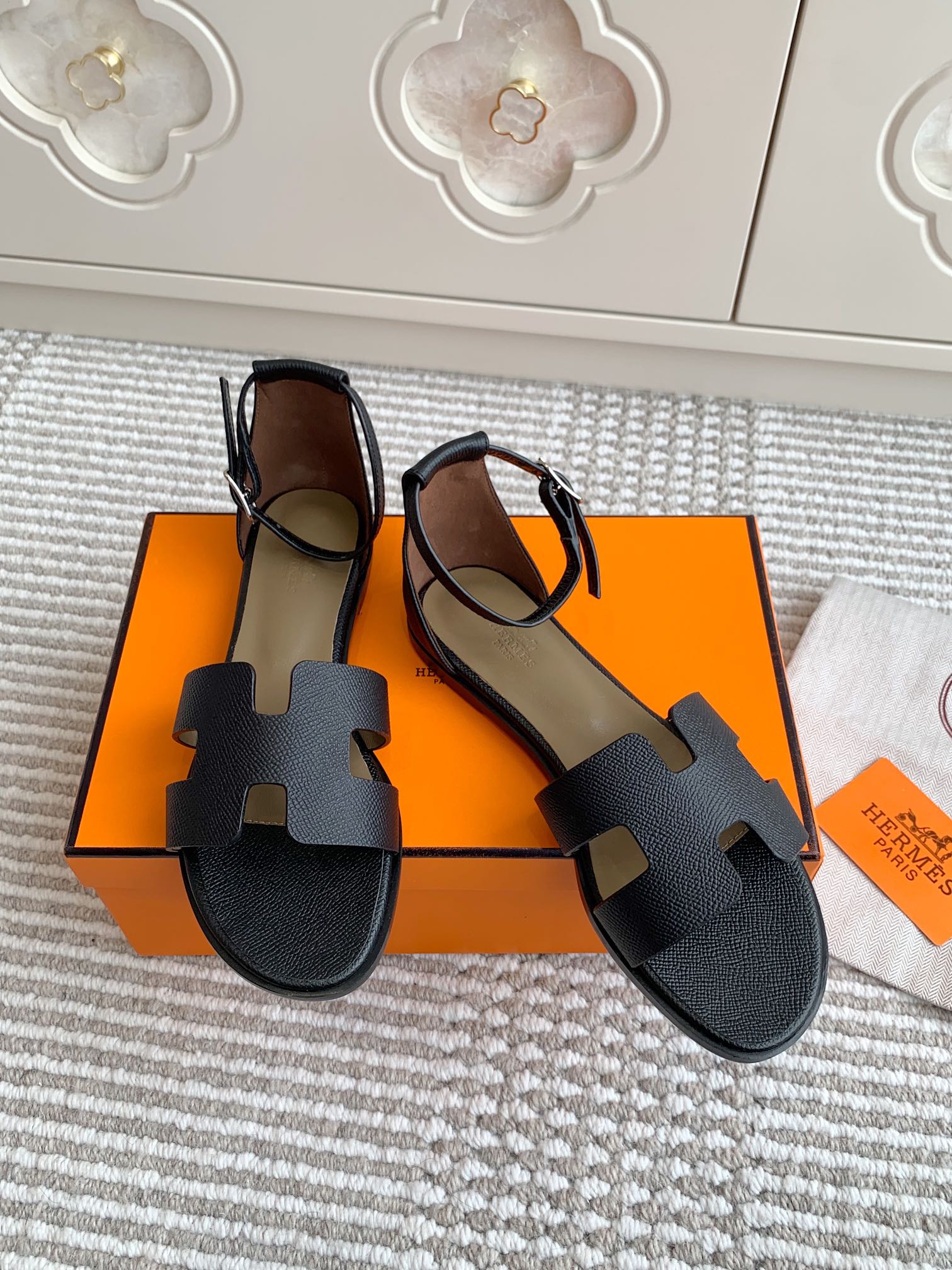 HM 25 Oran Sandal Gold Epsom Black Calfskin