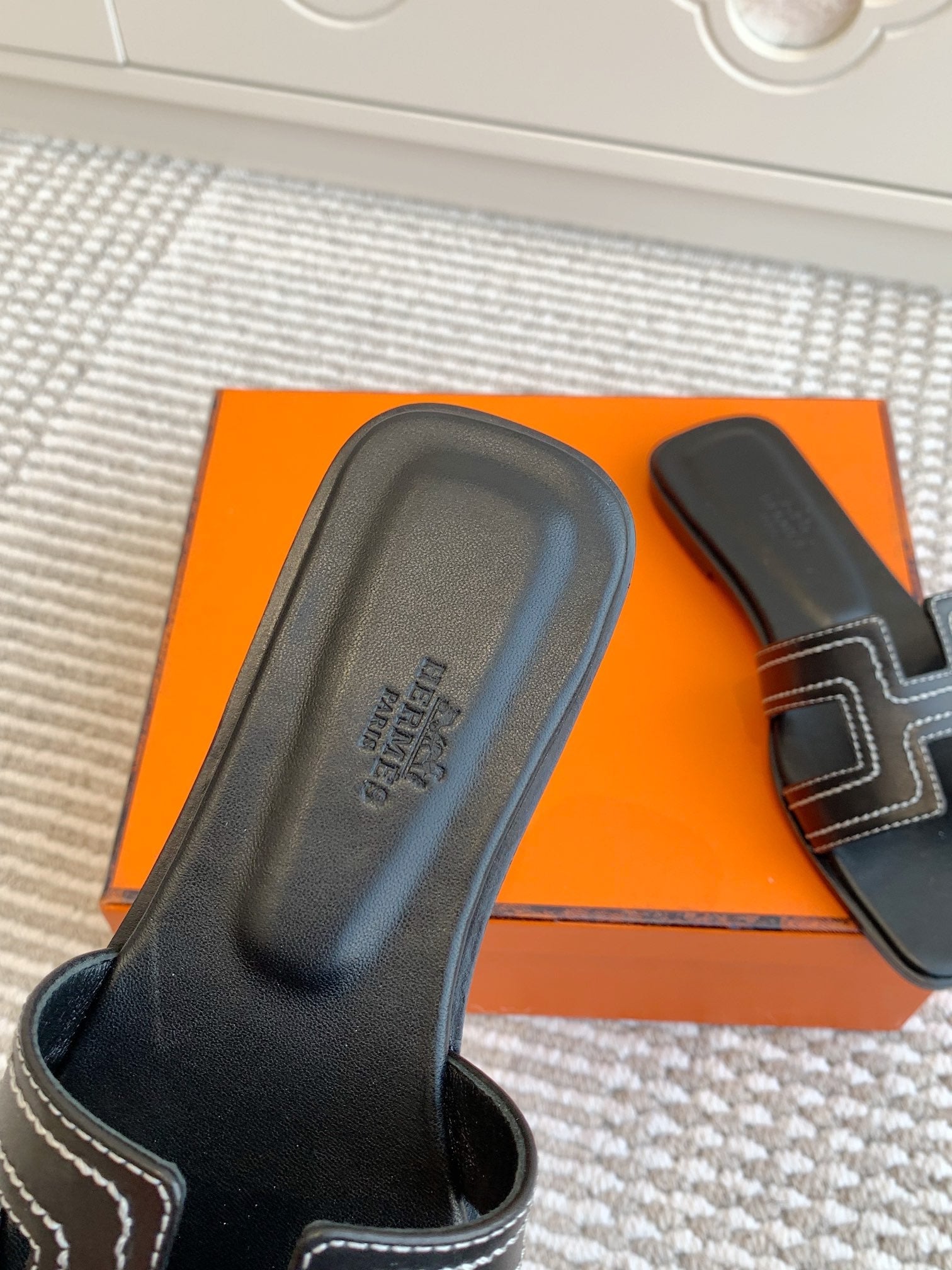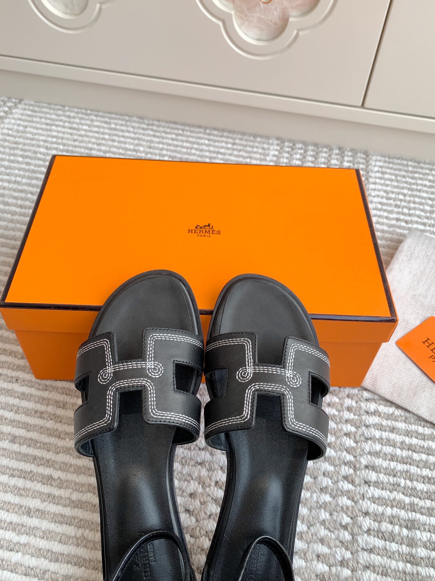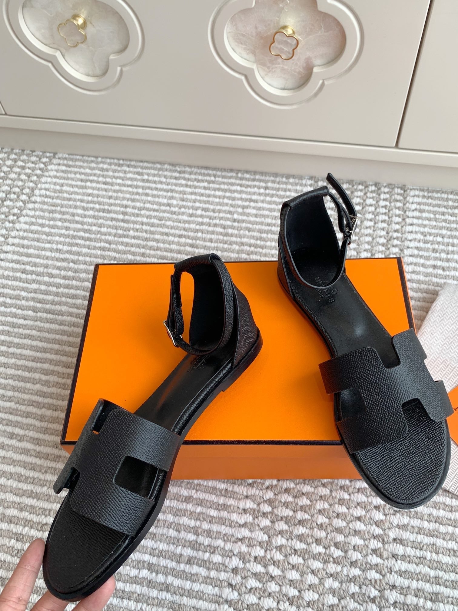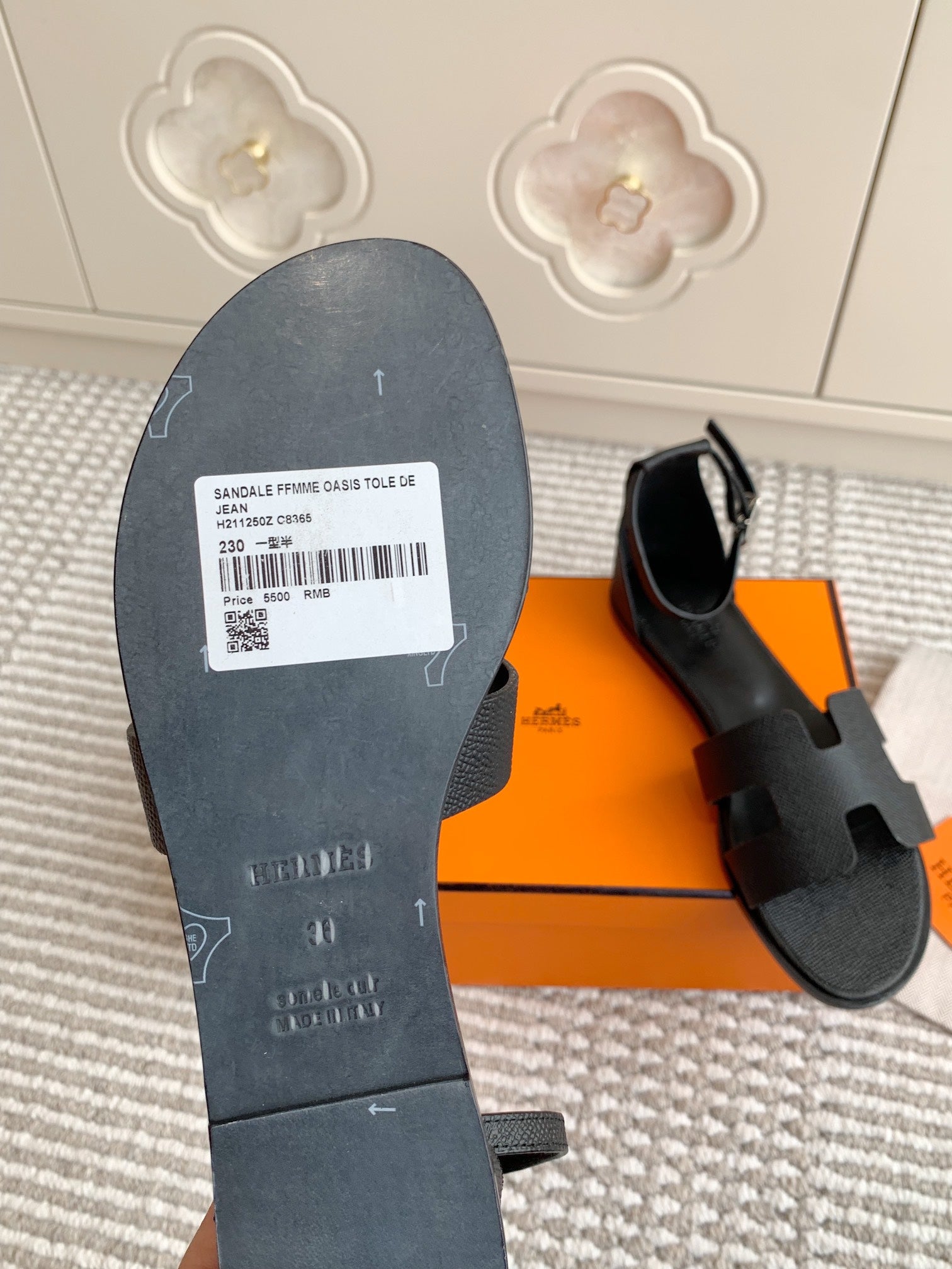 HM 25 Oran Sandal Gold Epsom Black Calfskin