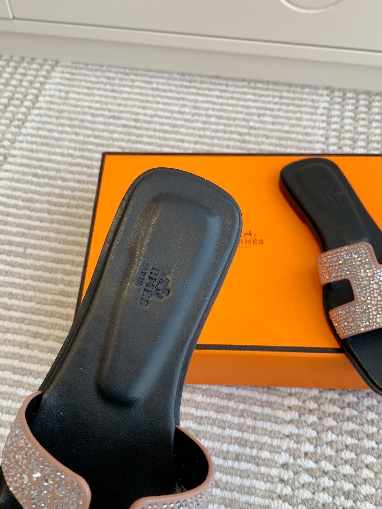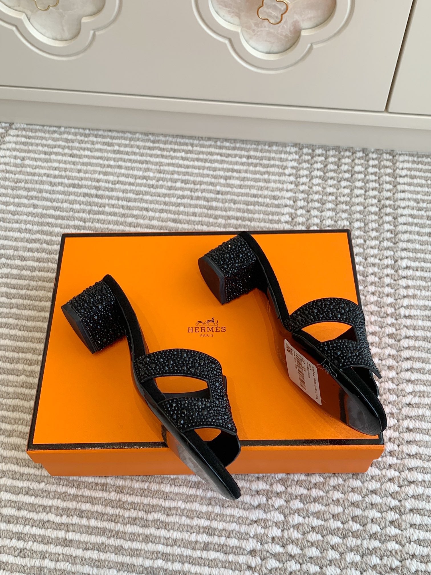 HM Oran Rhinestone Sandals Black Suede Goatskin 291391