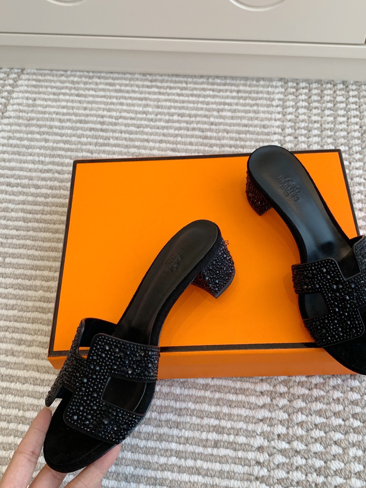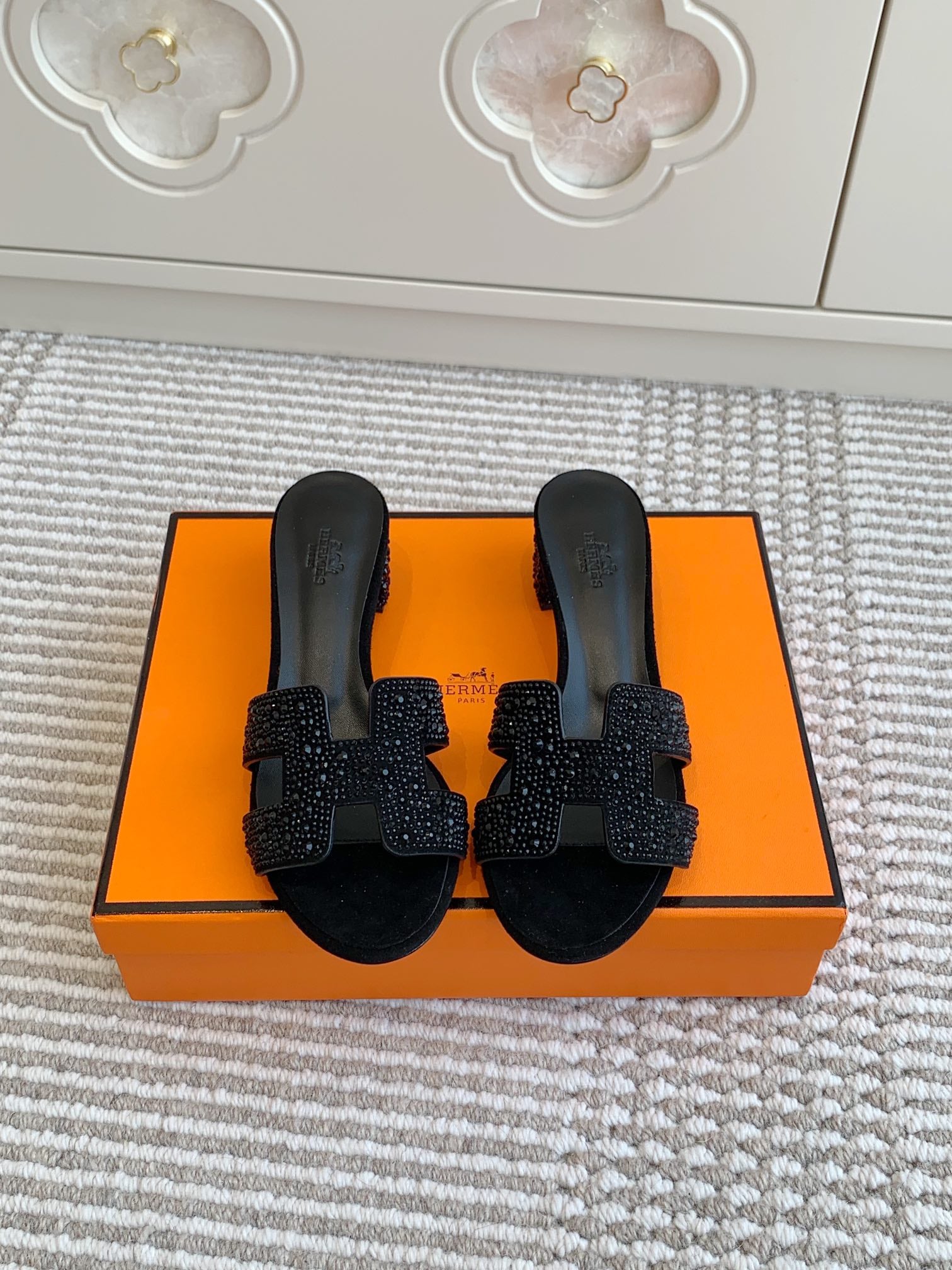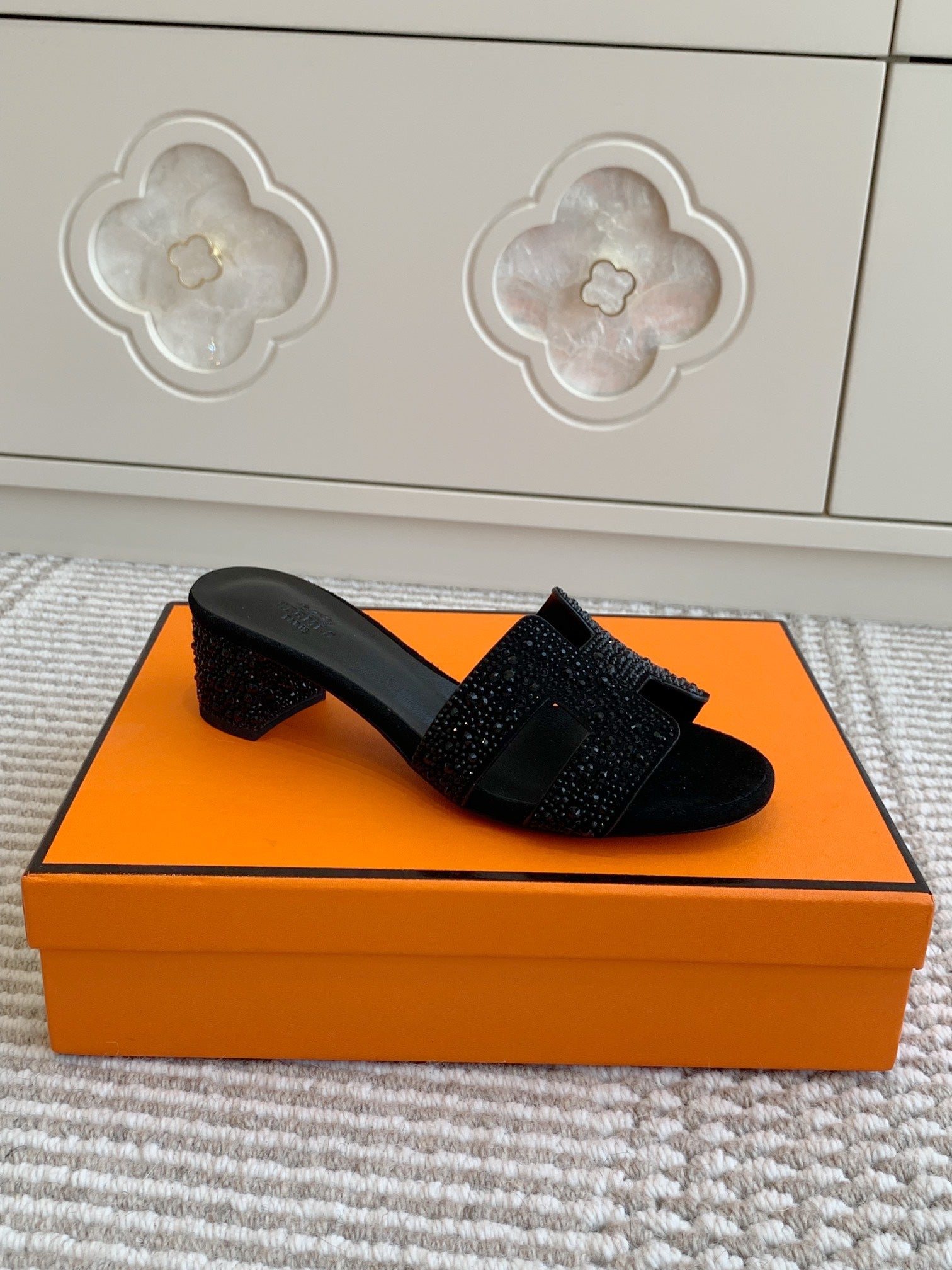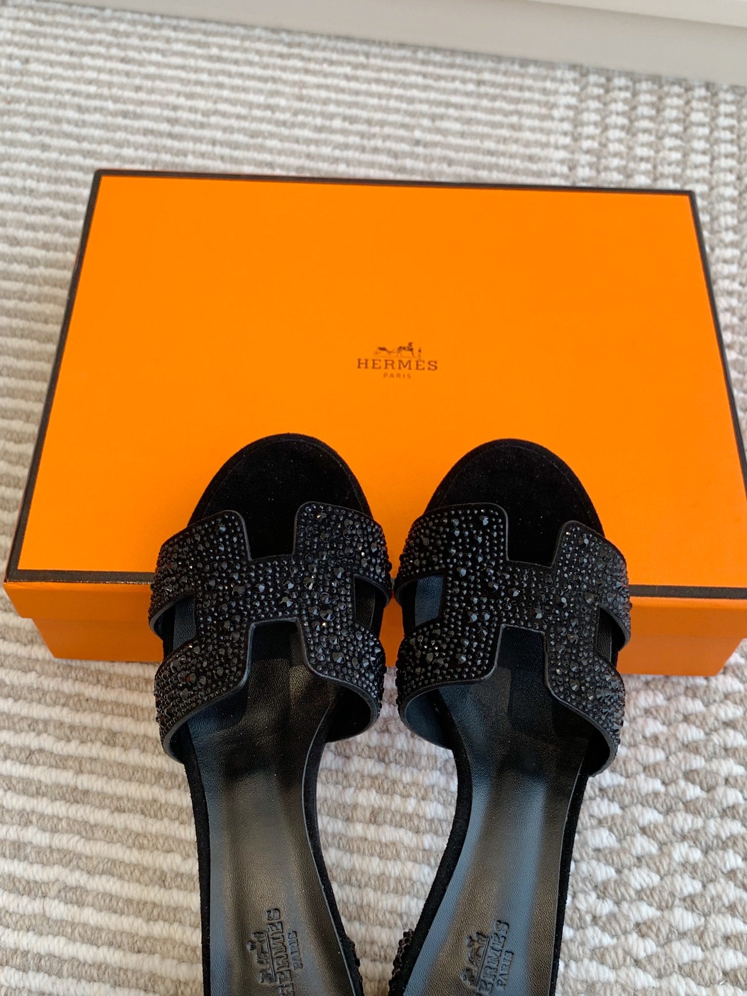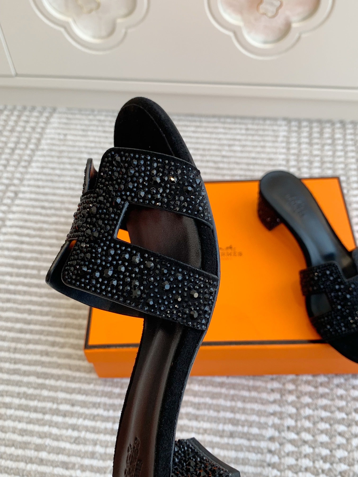 HM 25 Oran Sandal Black Suede Black H Crystal