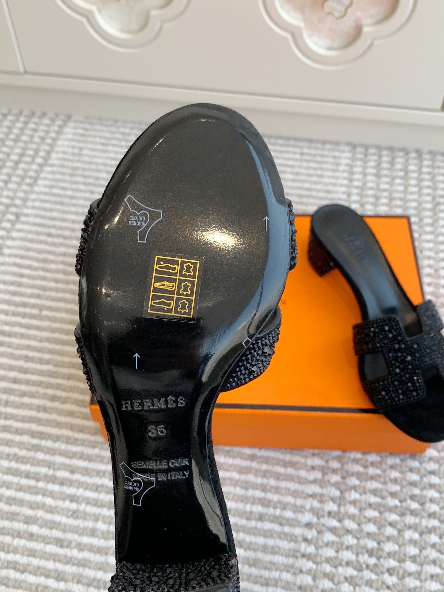HM 25 Oran Glitter Sandal All Black Calfskin