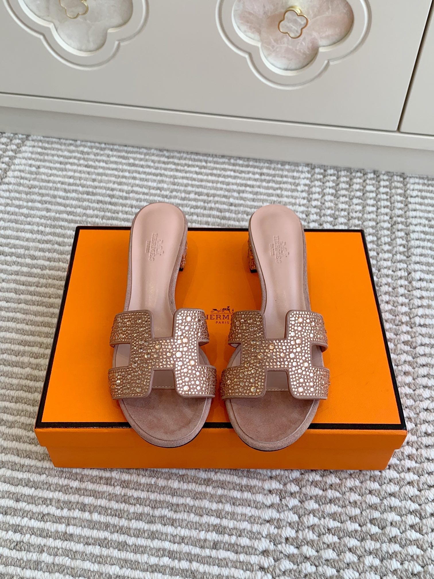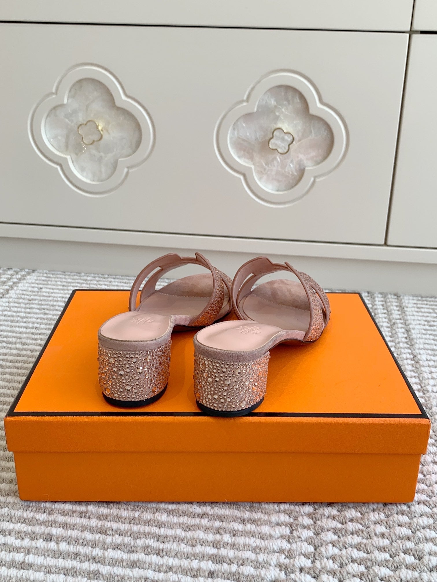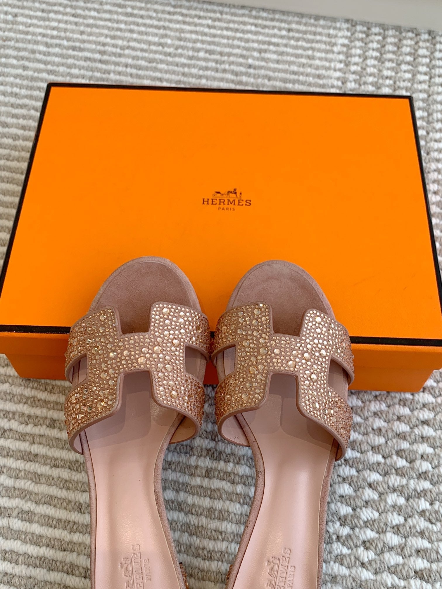 HM Oran Rhinestone Sandals Nude Suede Goatskin 291393