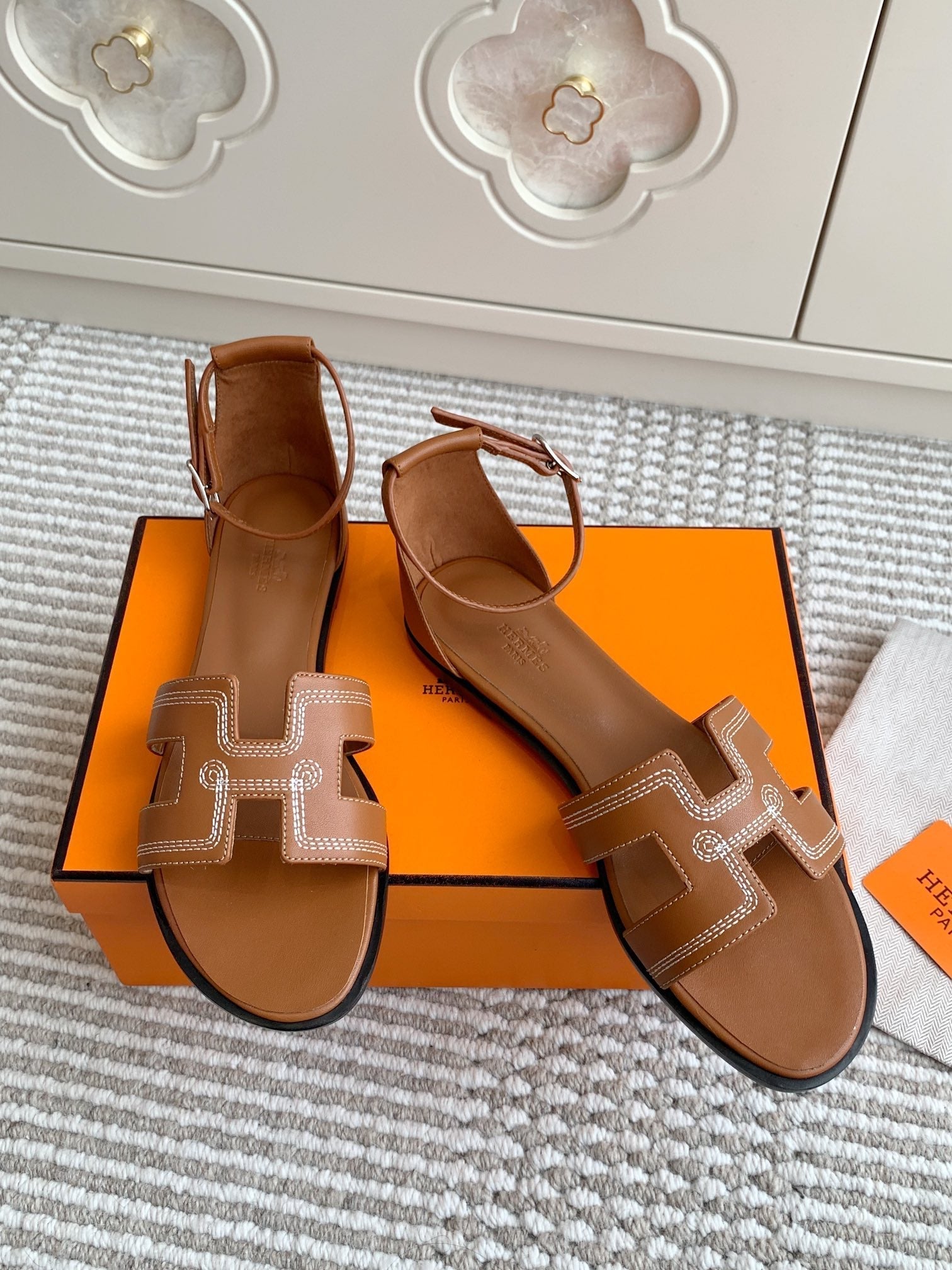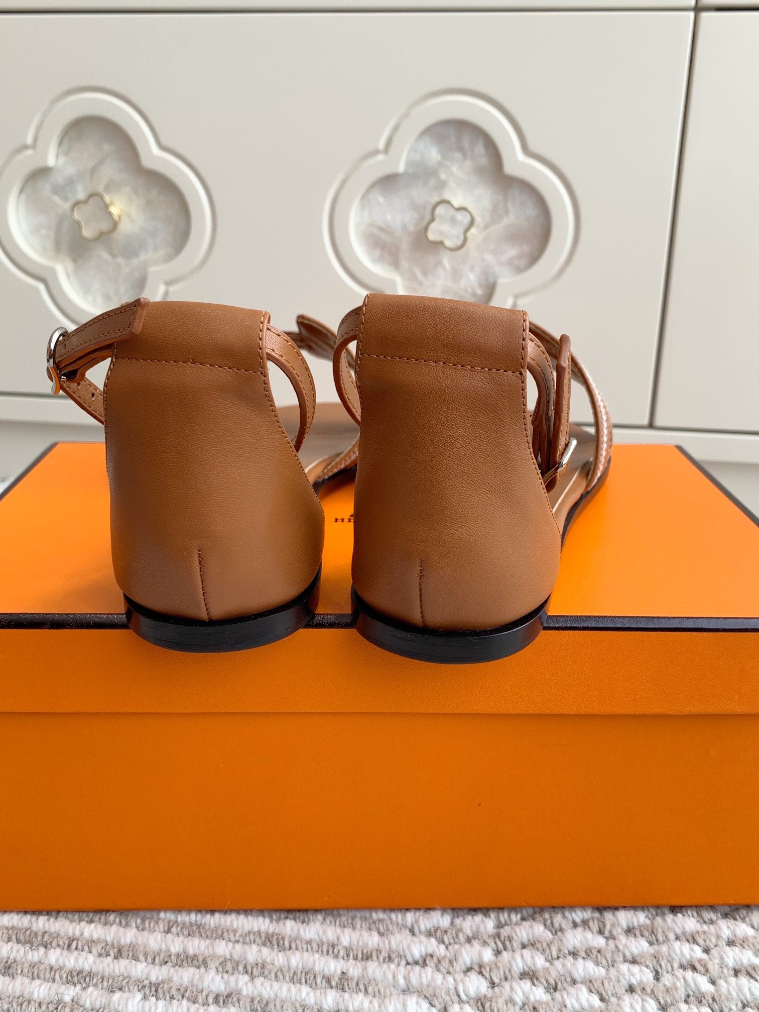 HM 25 Oran Sandal Brown Calfskin Dark Blue Denim