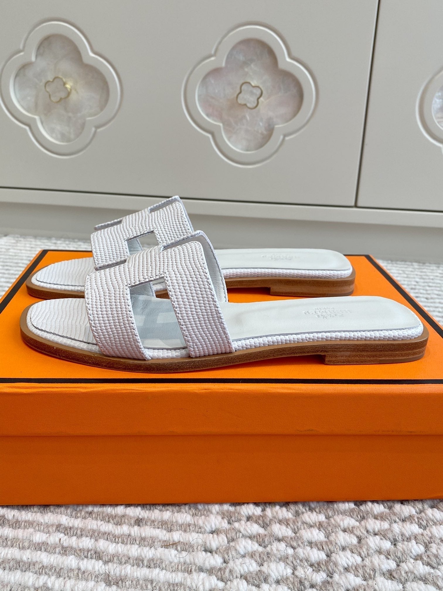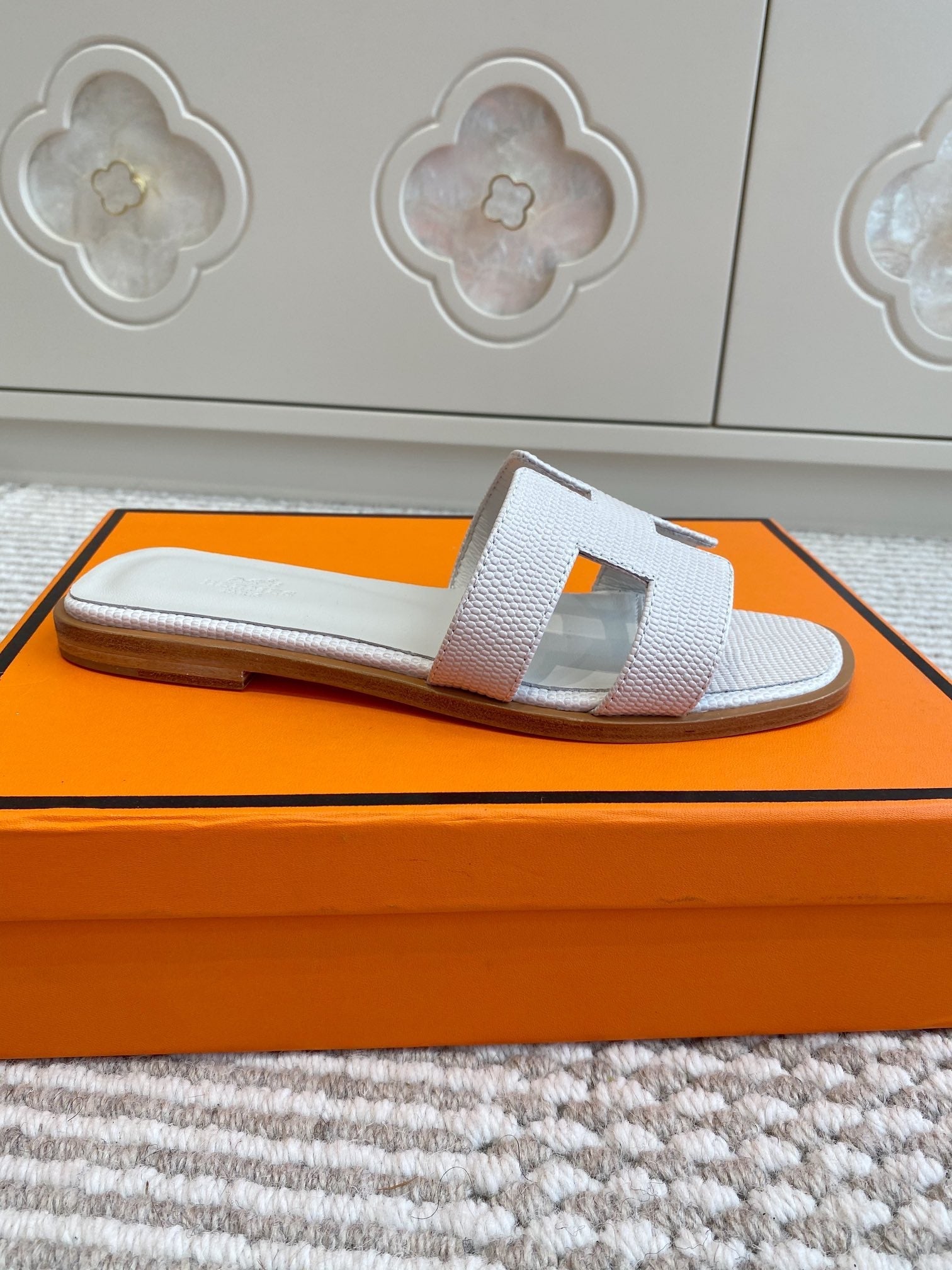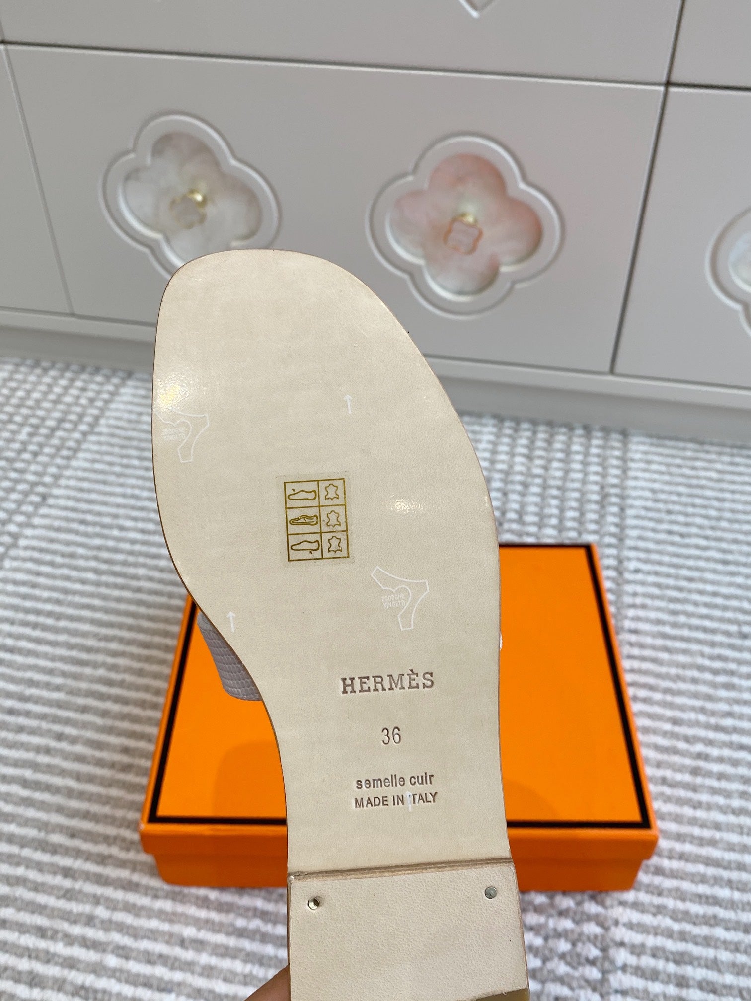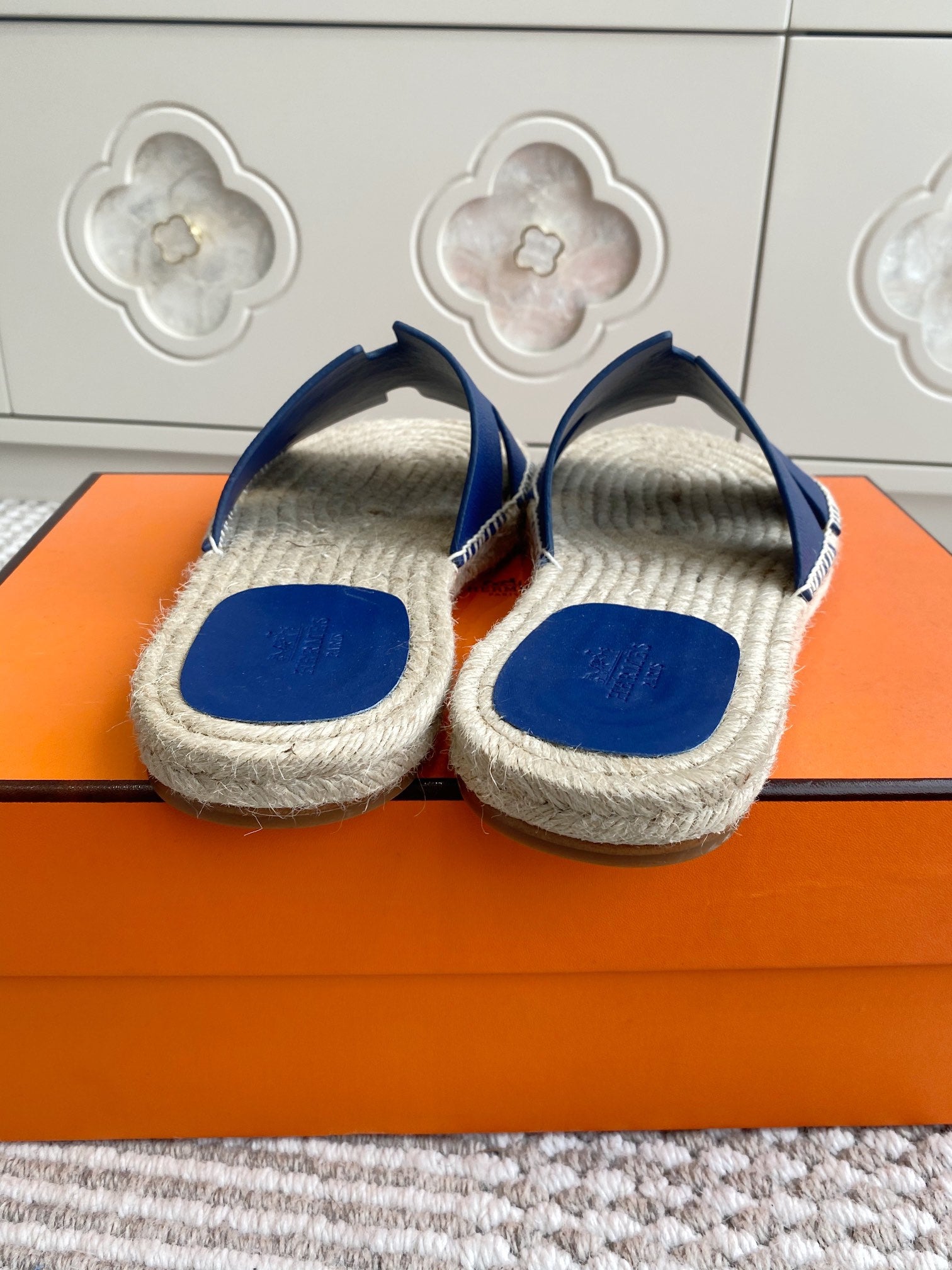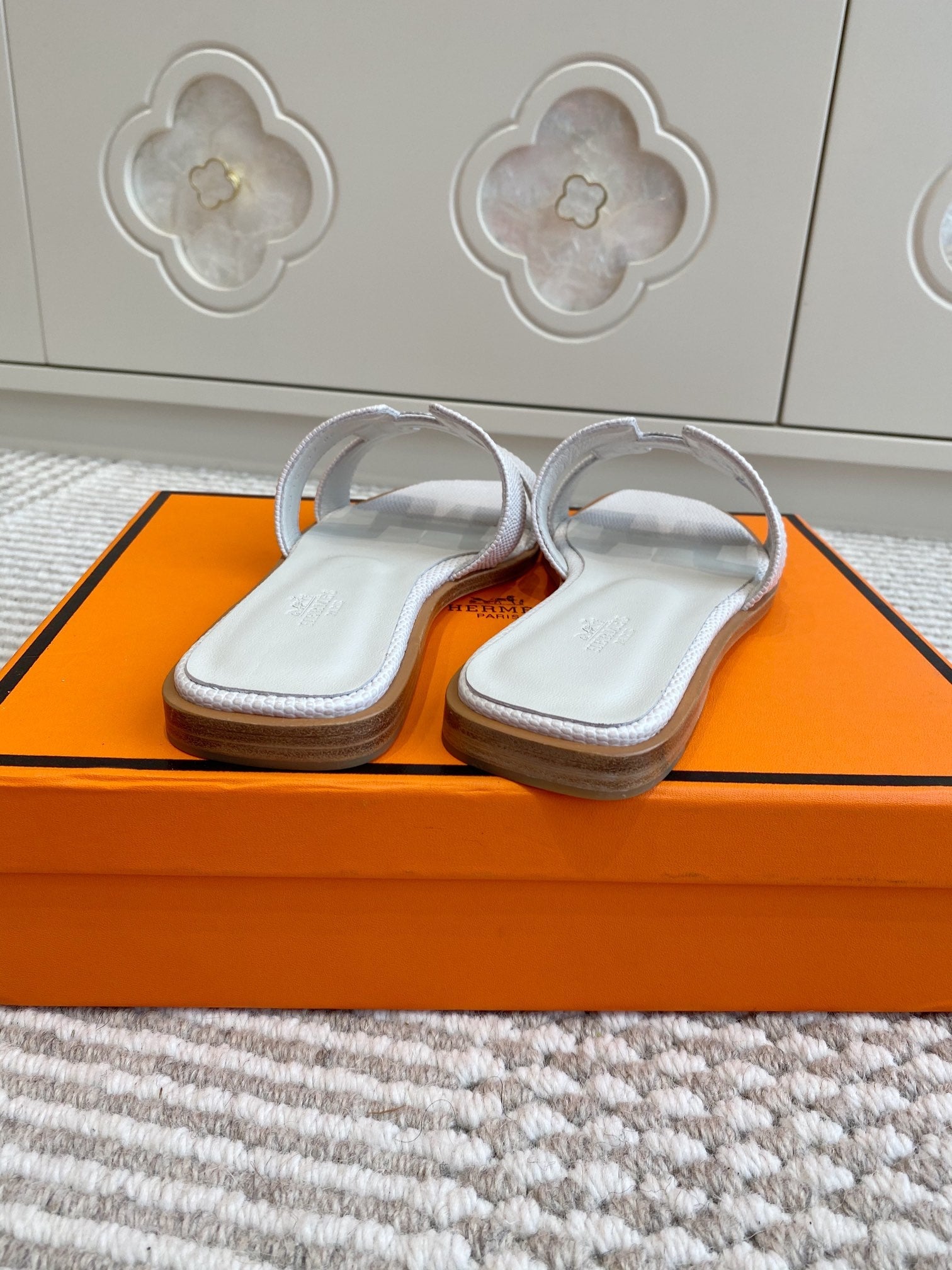 HM 25 Oran Sandal White Calfskin Blue Denim