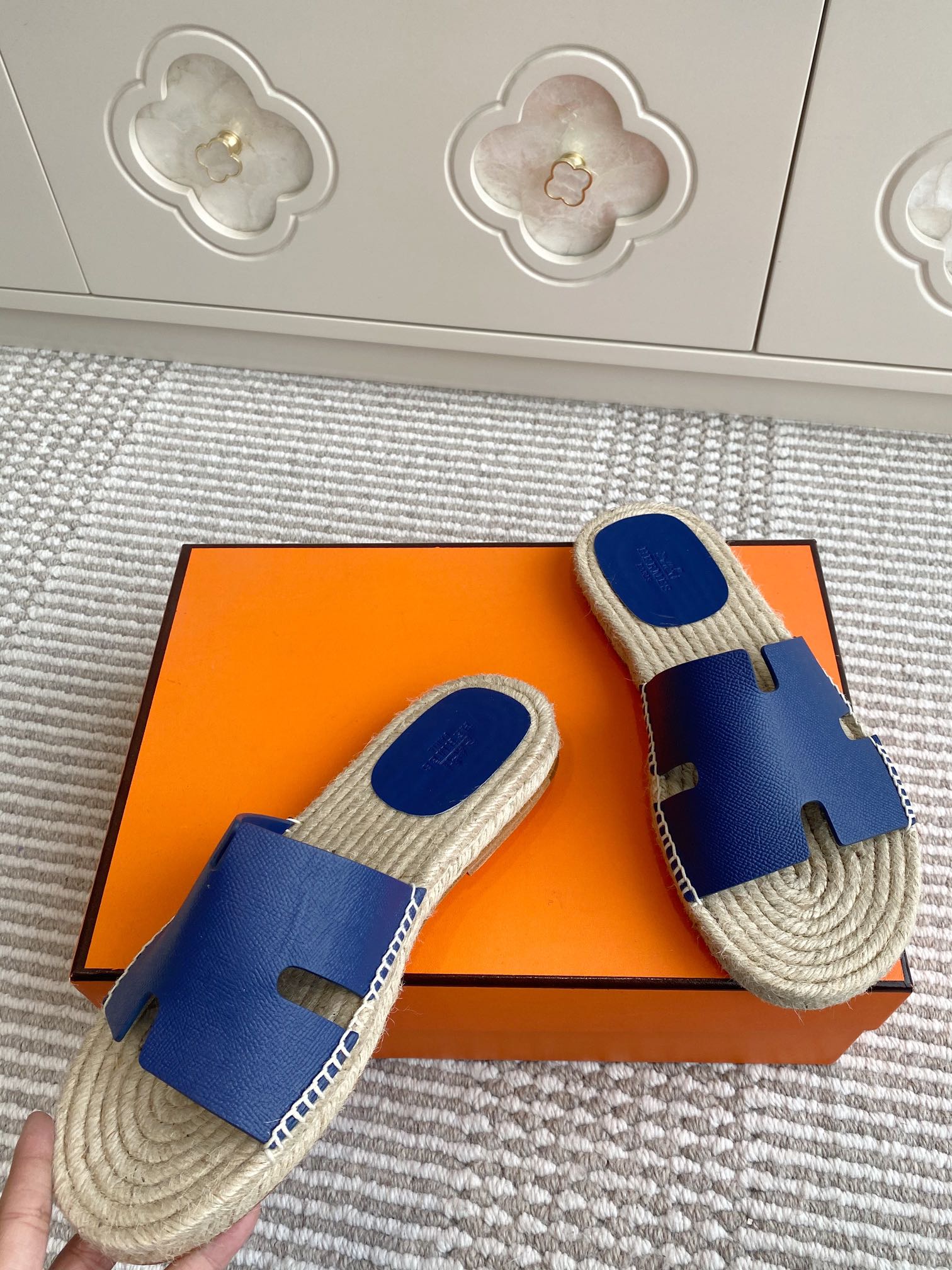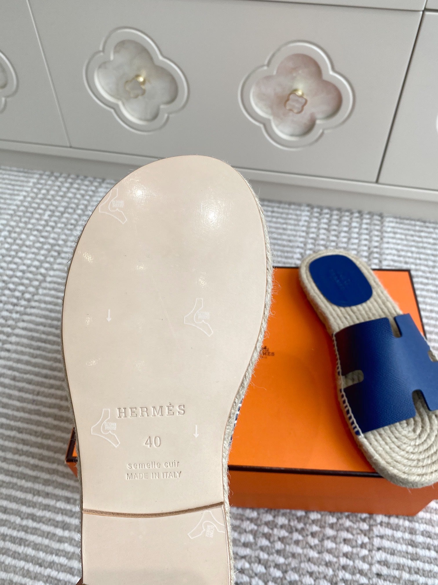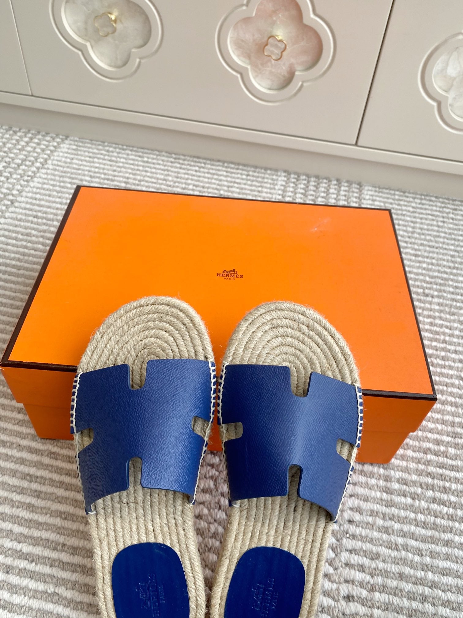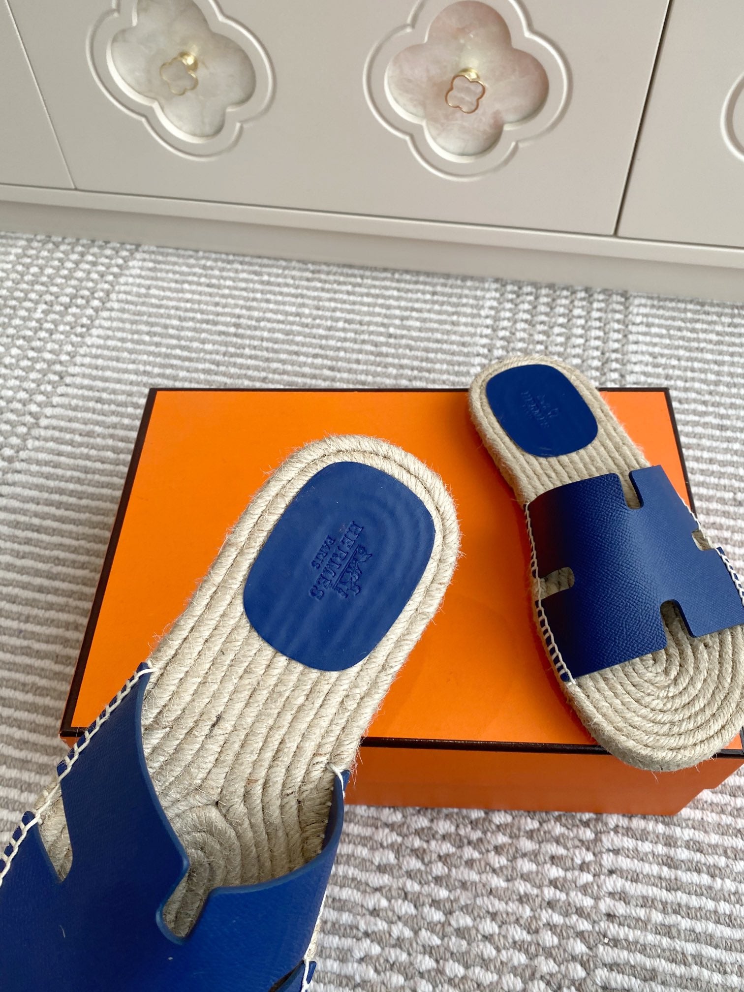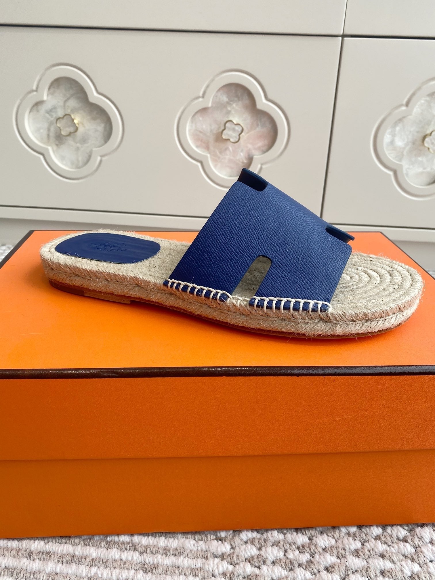 HM 25 Oran Sandal White Calfskin Blue Denim