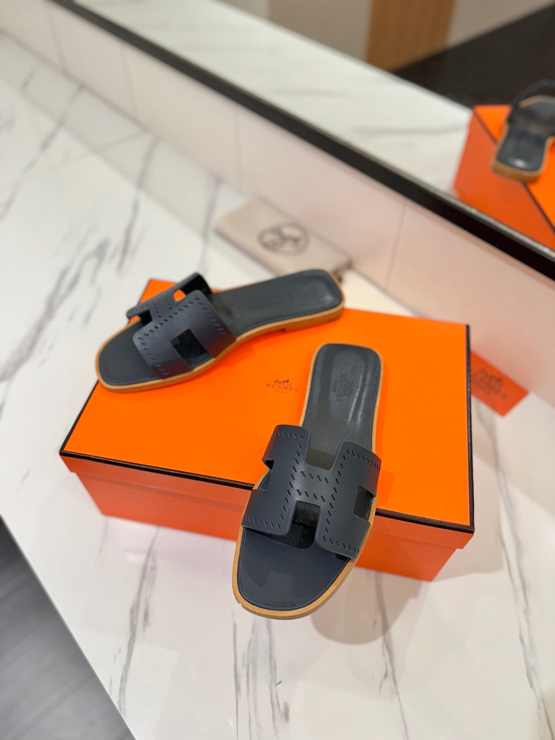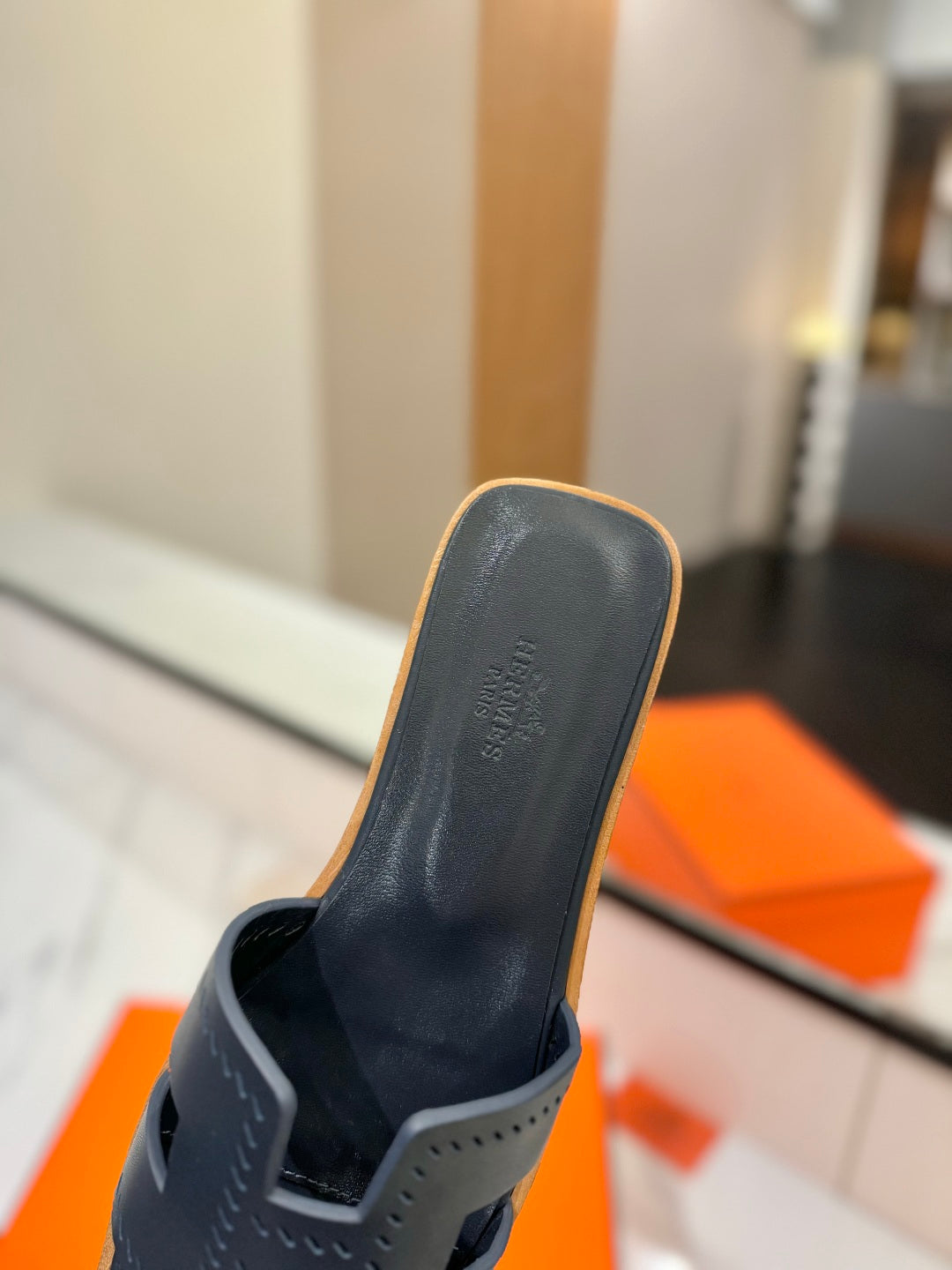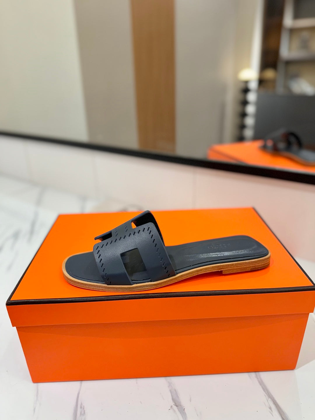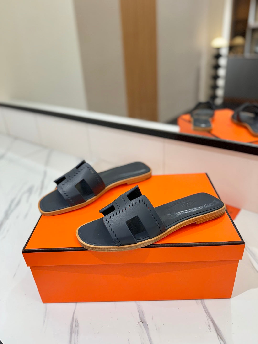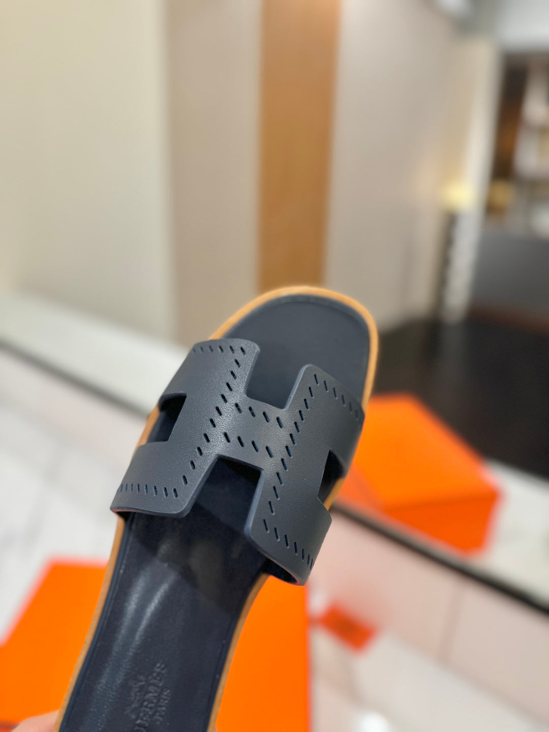 HM Oran Sandal Dark Gray Perforate Cowhide 294877