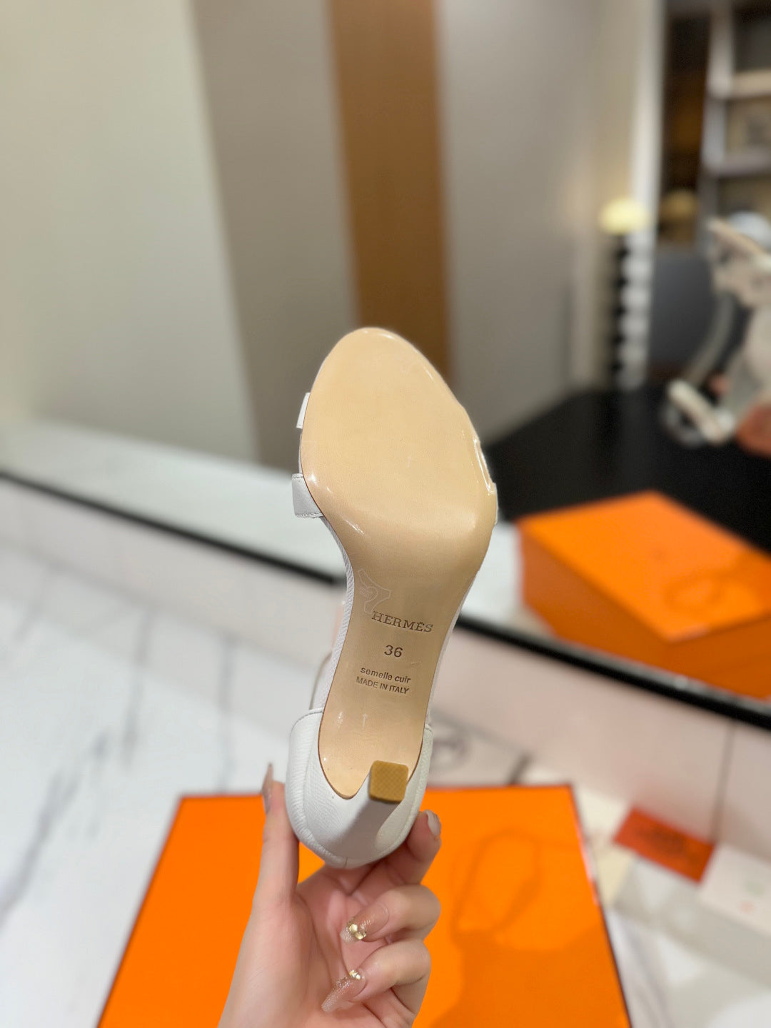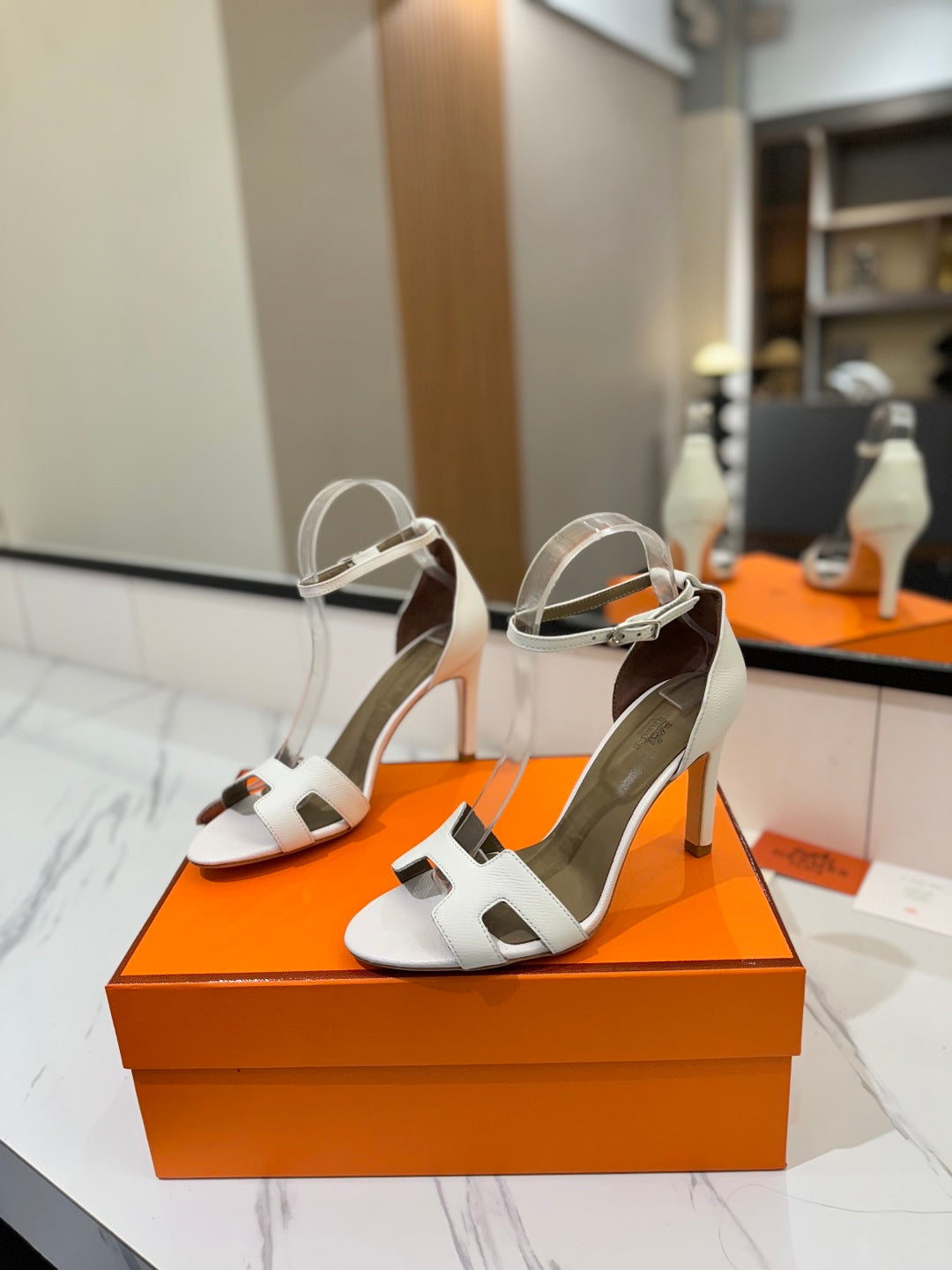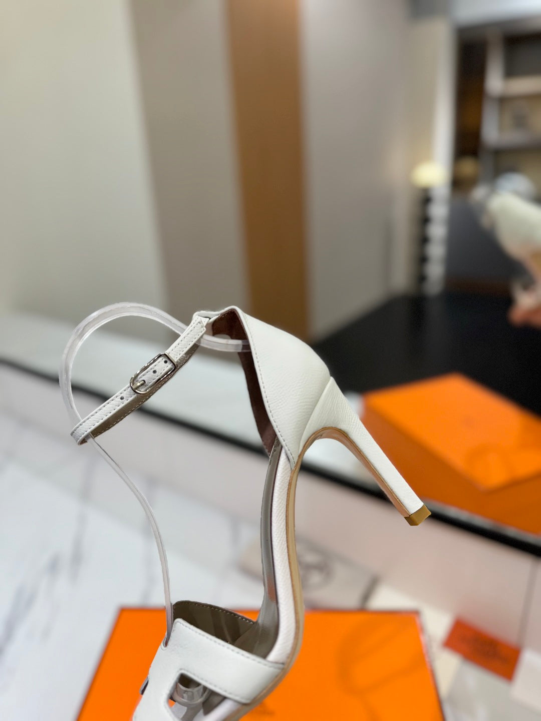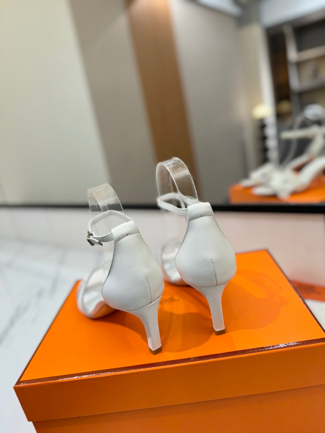 HM Joy 90mm Heeled Sandals White Flat Cowhide 294916