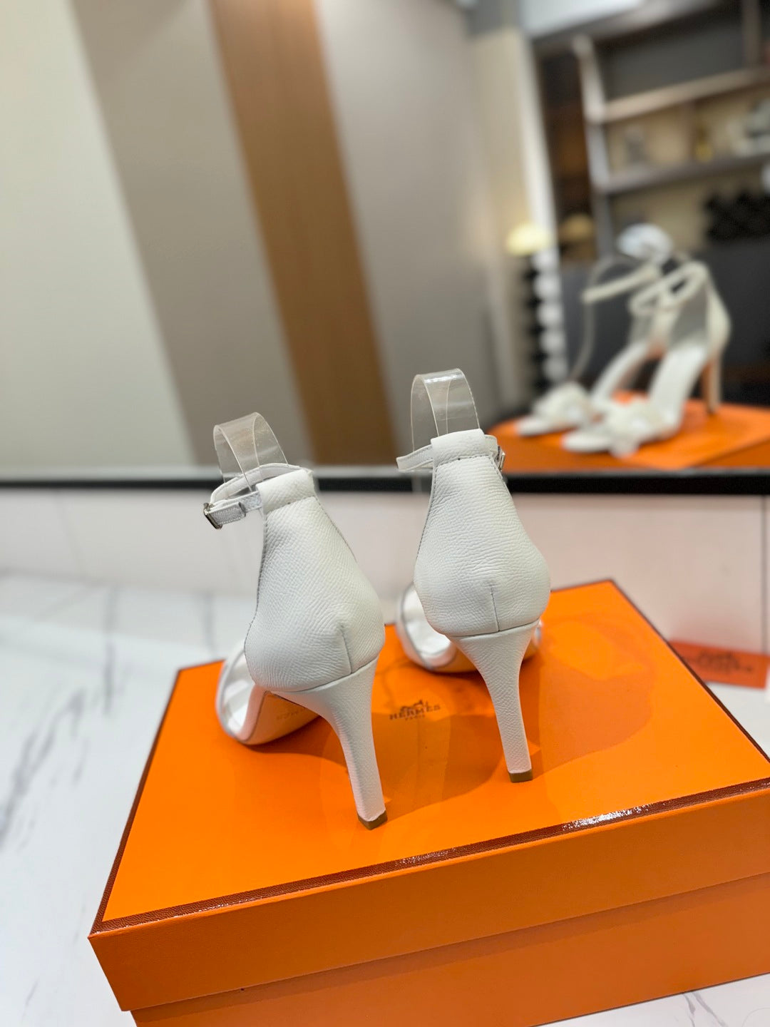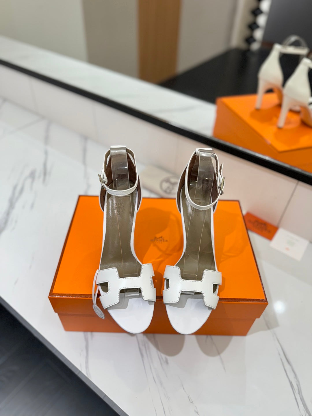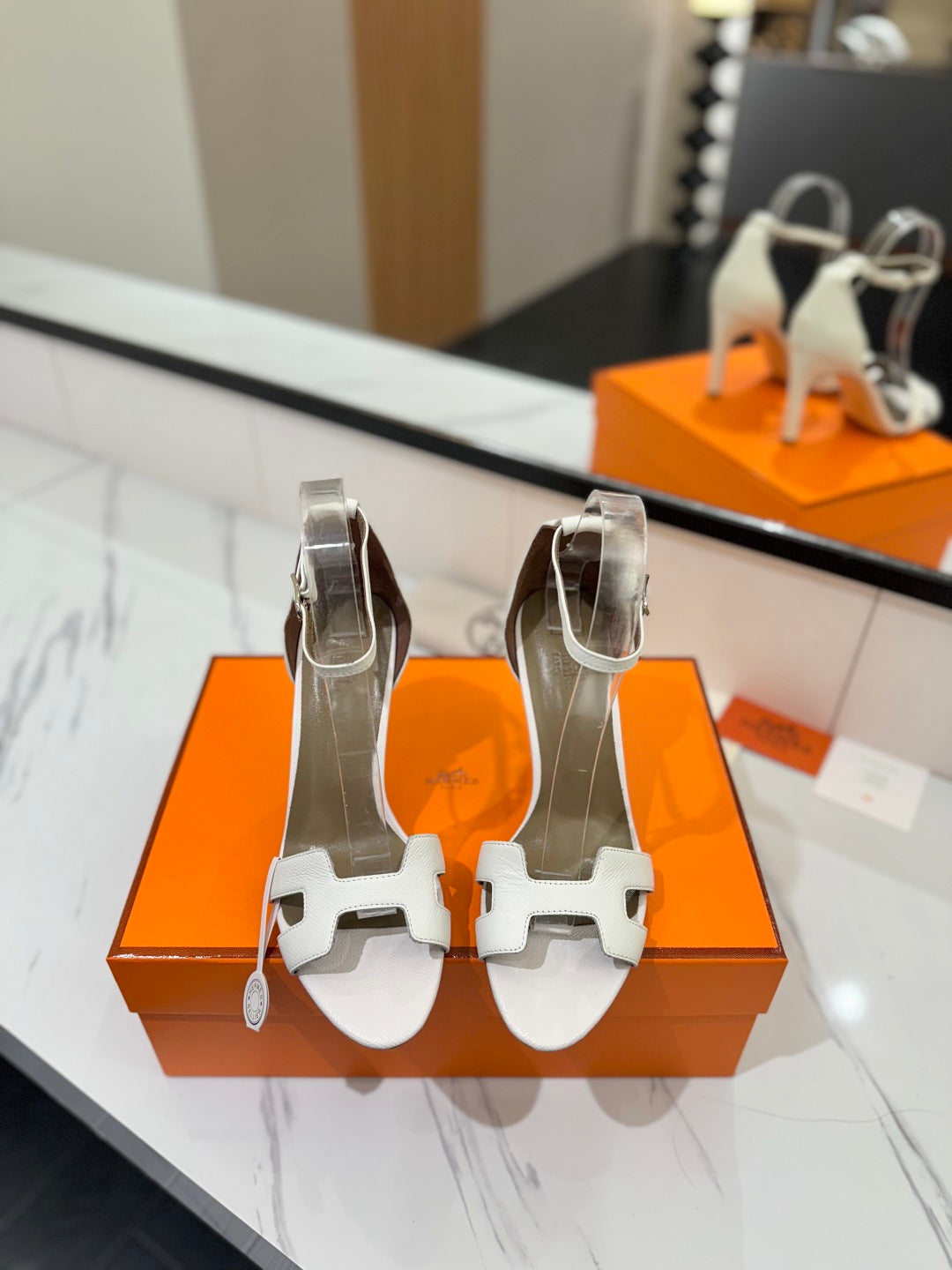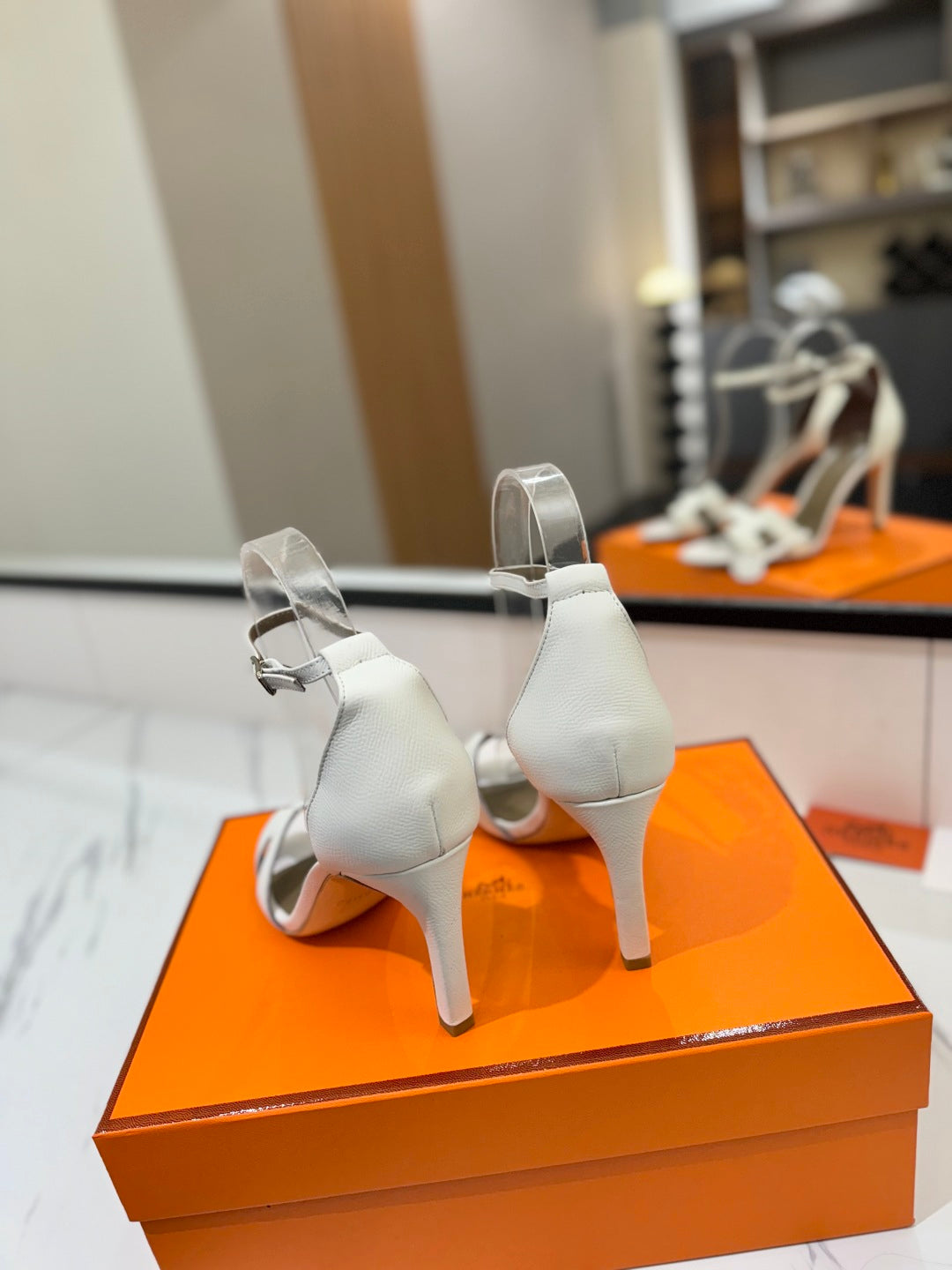 HM Joy 90mm Heeled Sandals White Flat Cowhide 294916