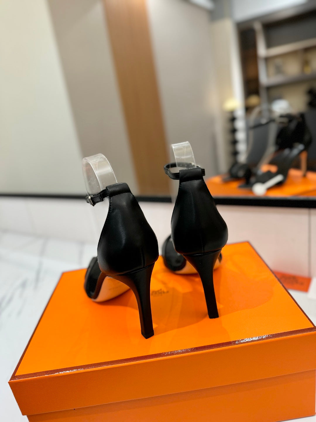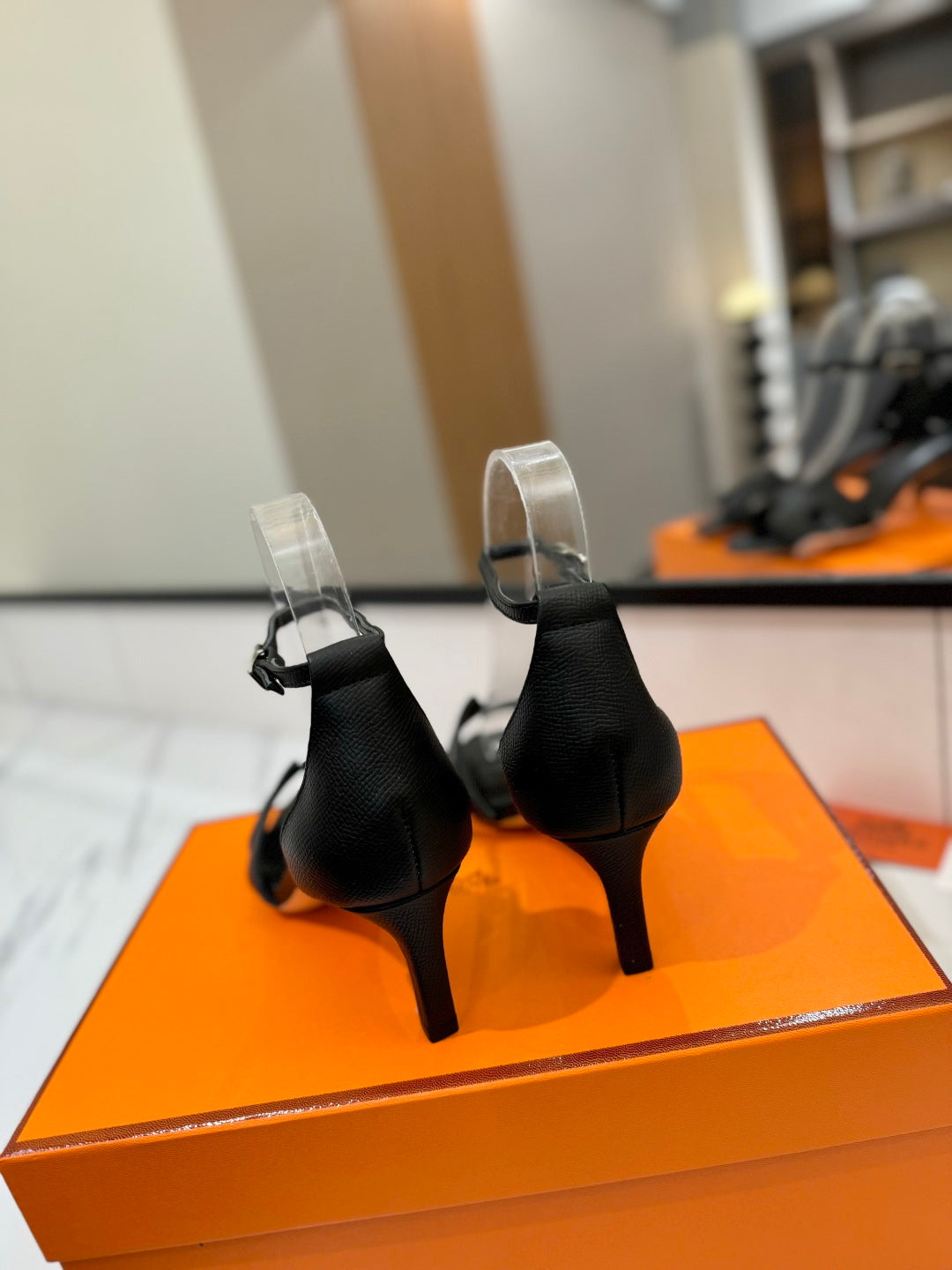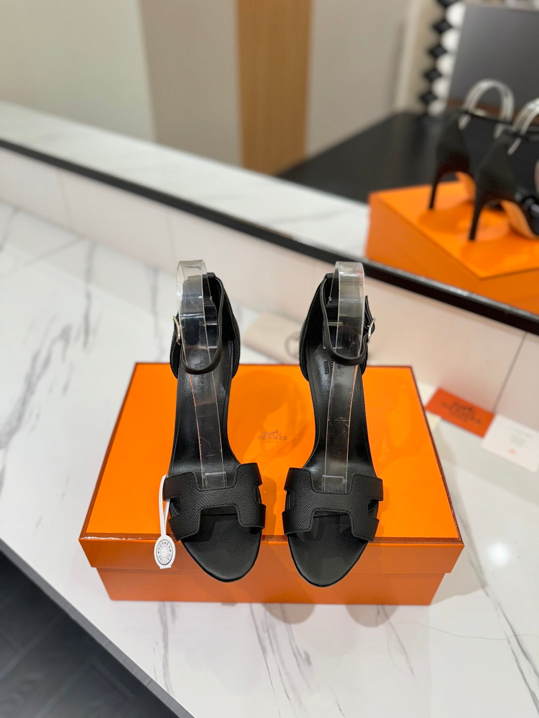 HM Joy 90mm Heeled Sandals Black Flat Cowhide 294917