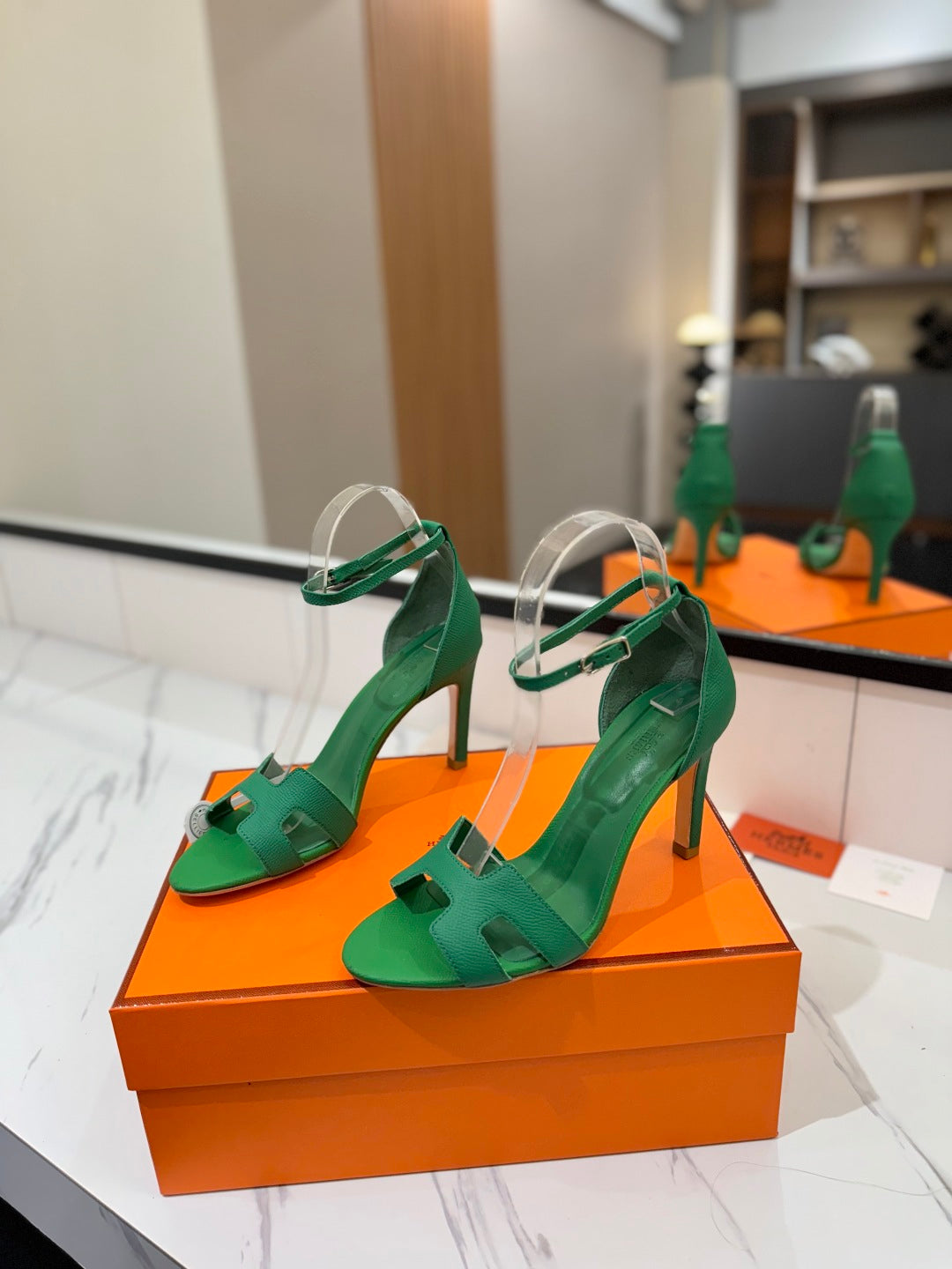 HM Joy 65mm Heeled Sandals Green Cowhide 294910
