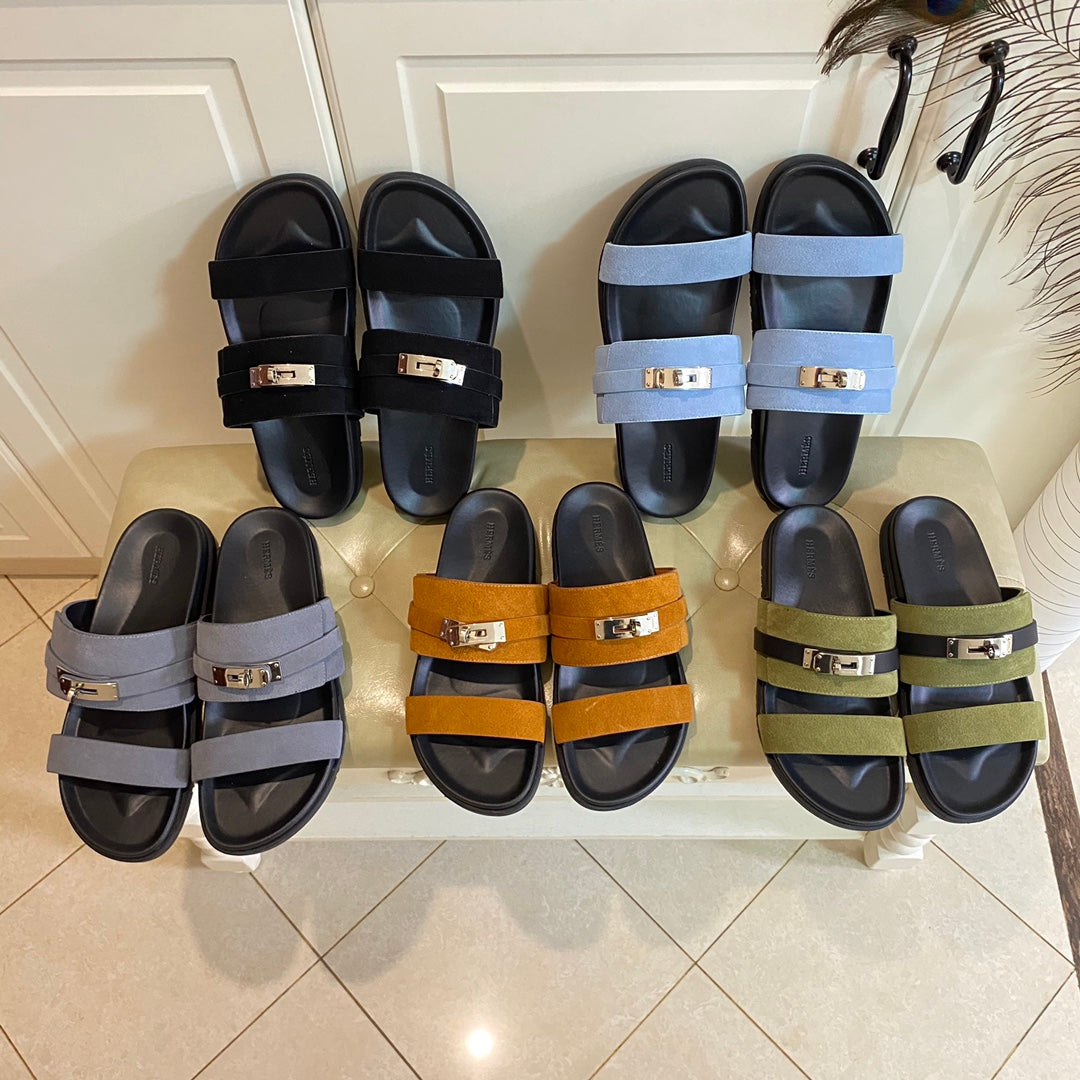 HM Chypre Sandal In Light Grey Blue Mix White Suede And Fleece Lining 961137
