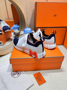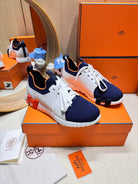 HM Depart slip-on Sneaker White mix Navy blue Knitted fabric and Calfskin 206317