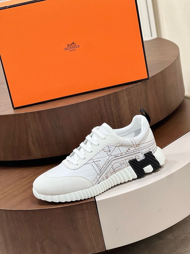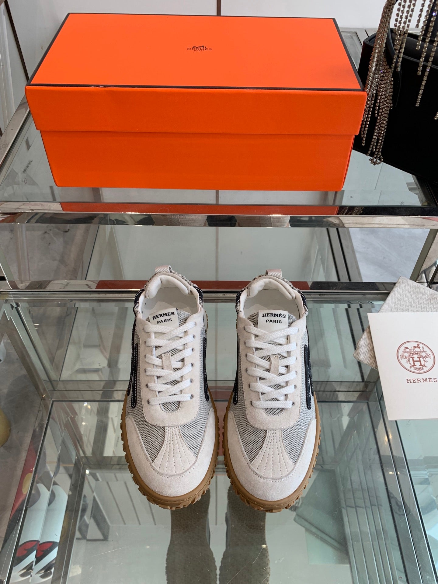 HM Day Sneaker White Mix Gray Canvas Calfskin 291817