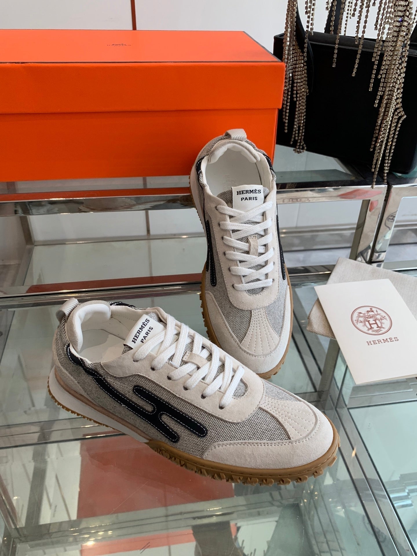 HM Bouncing sneaker Beige Gray mix Velvet Rose Fabric with Suede 212283