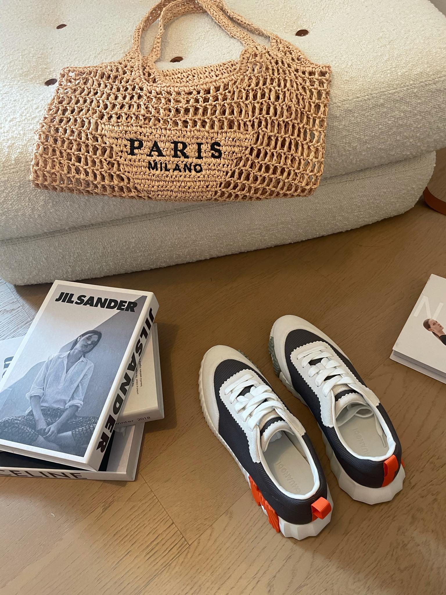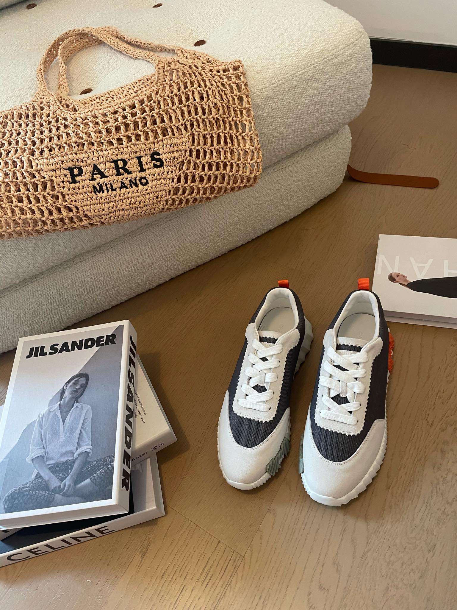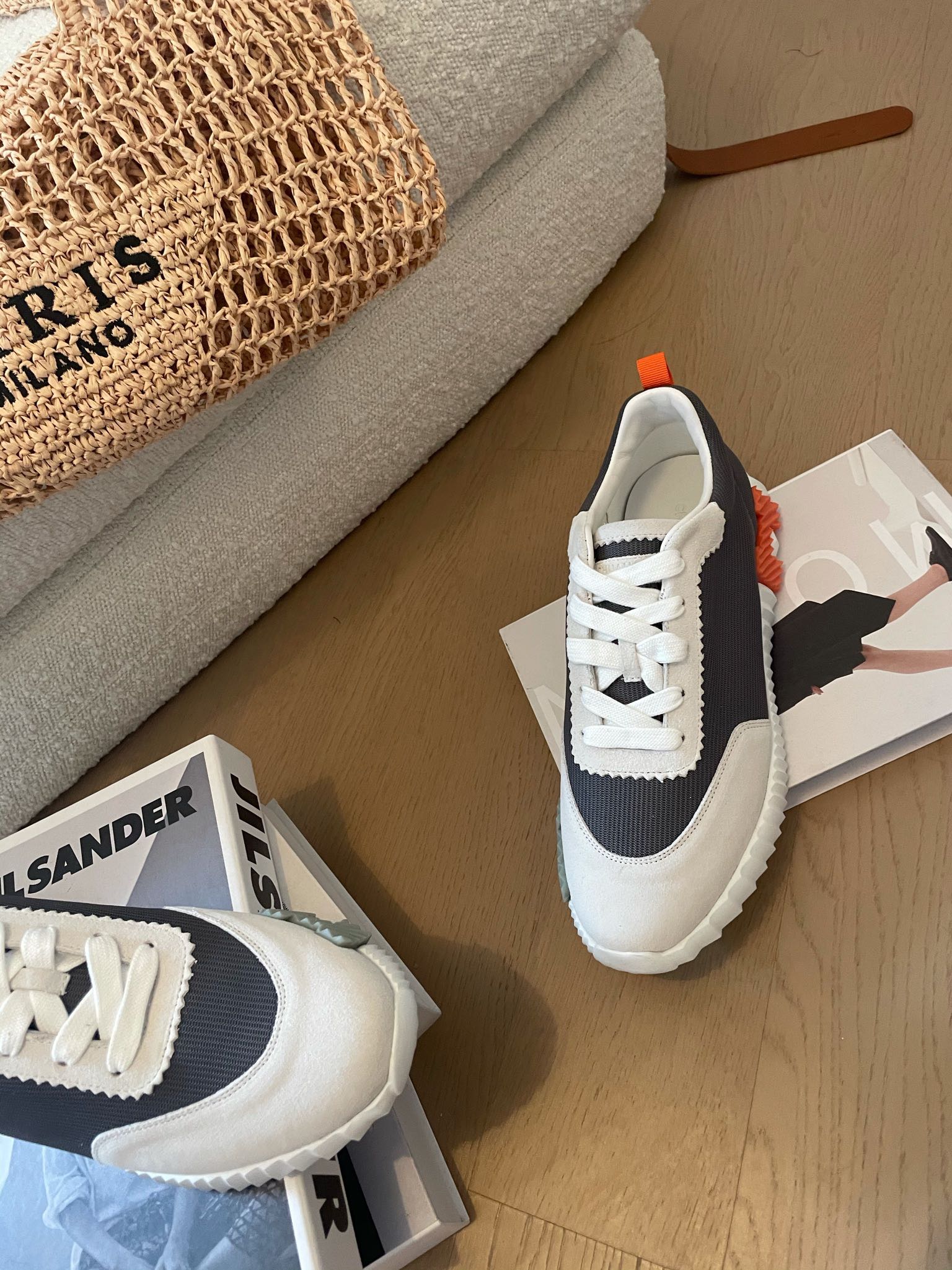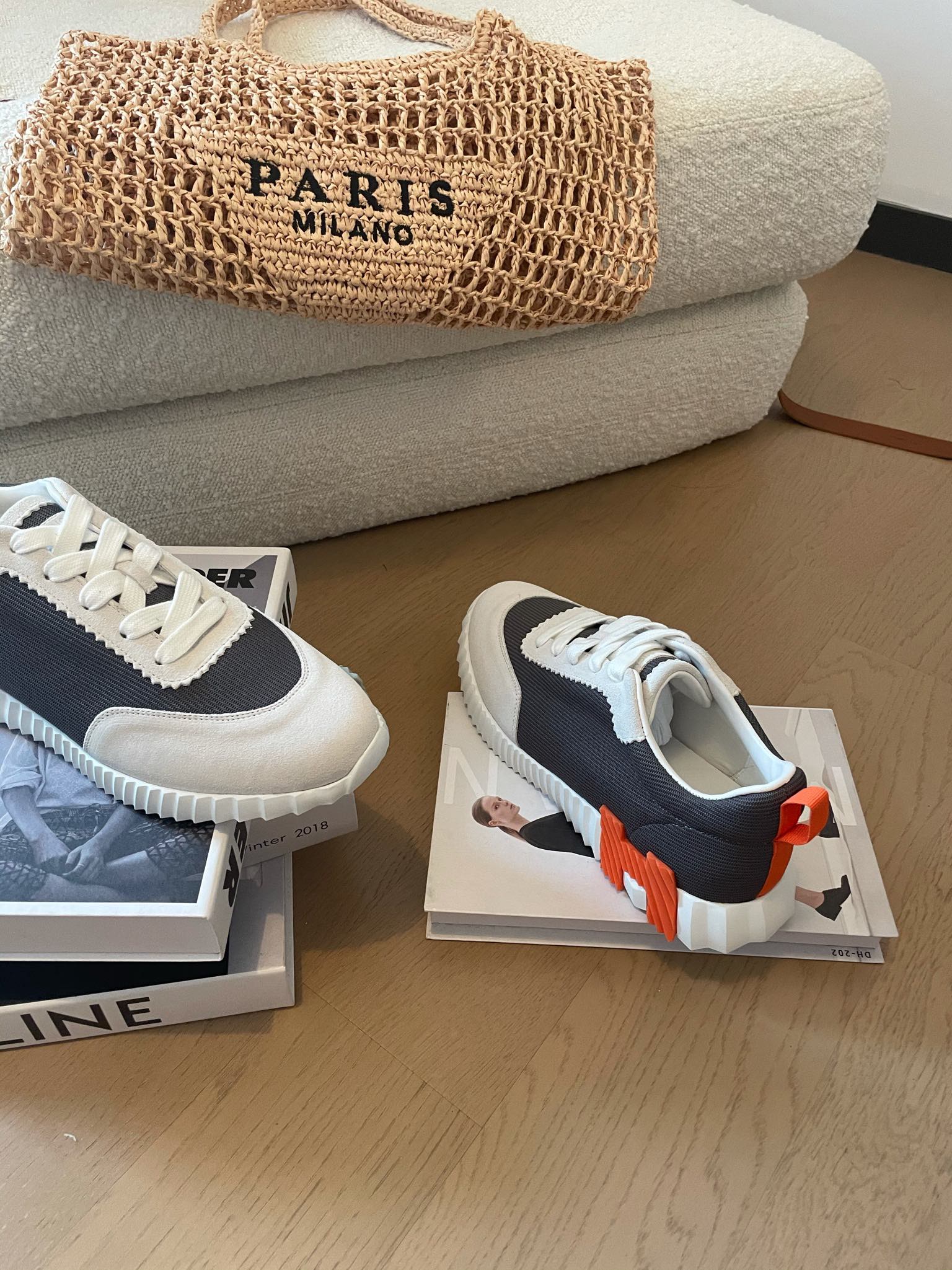 HM Bouncing 35 Sneakers White Canvas & Suede Goatskin H Black Orange