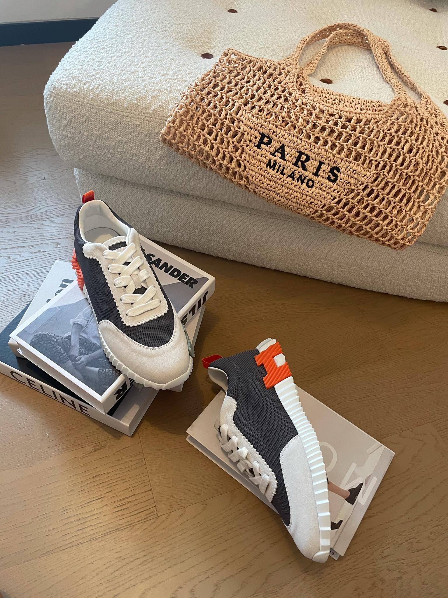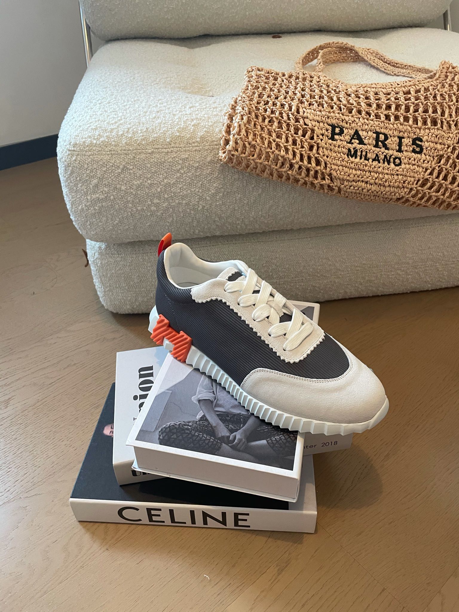 HM Bouncing 35 Sneakers Grey Mesh Canvas & Suede Goatskin H Blue Orange