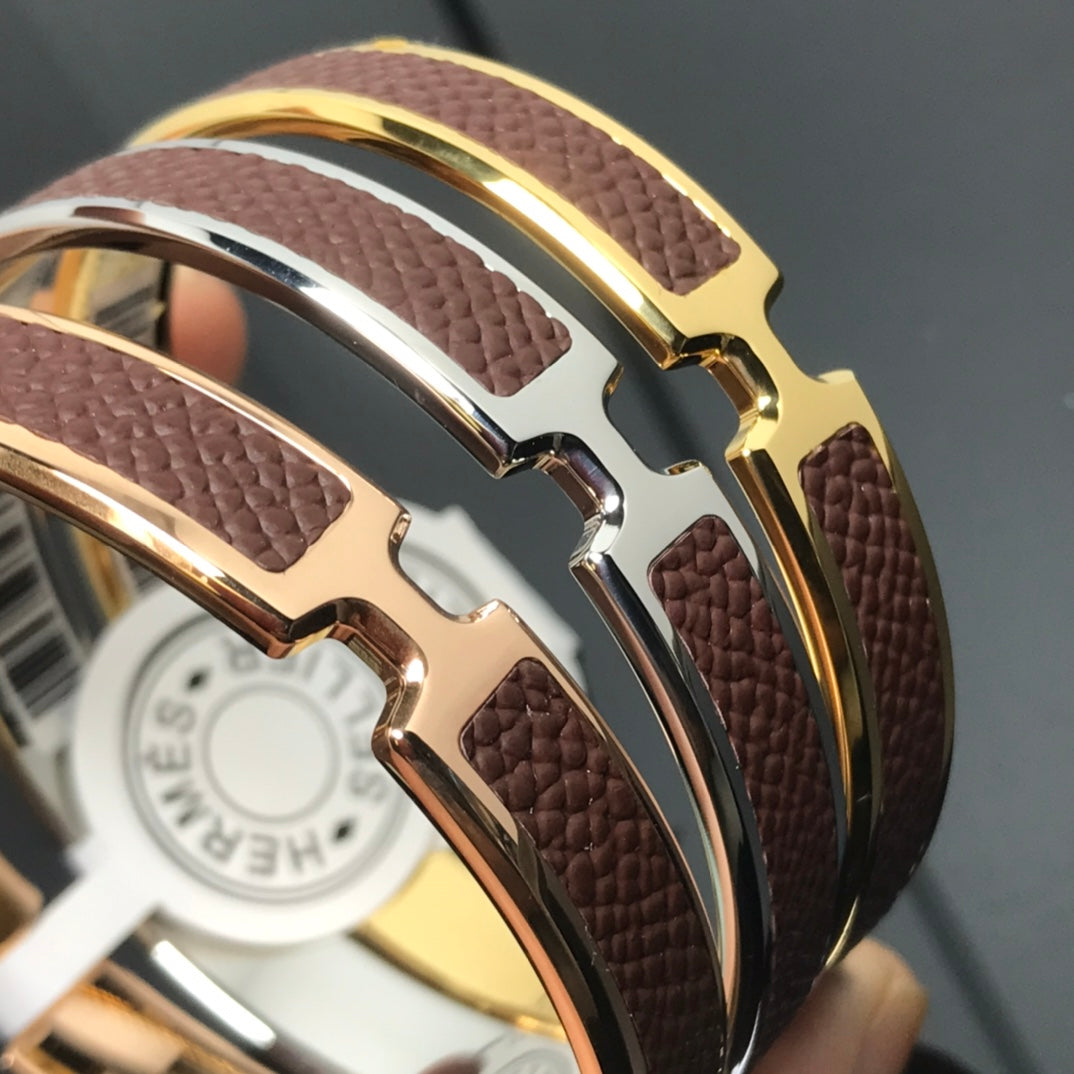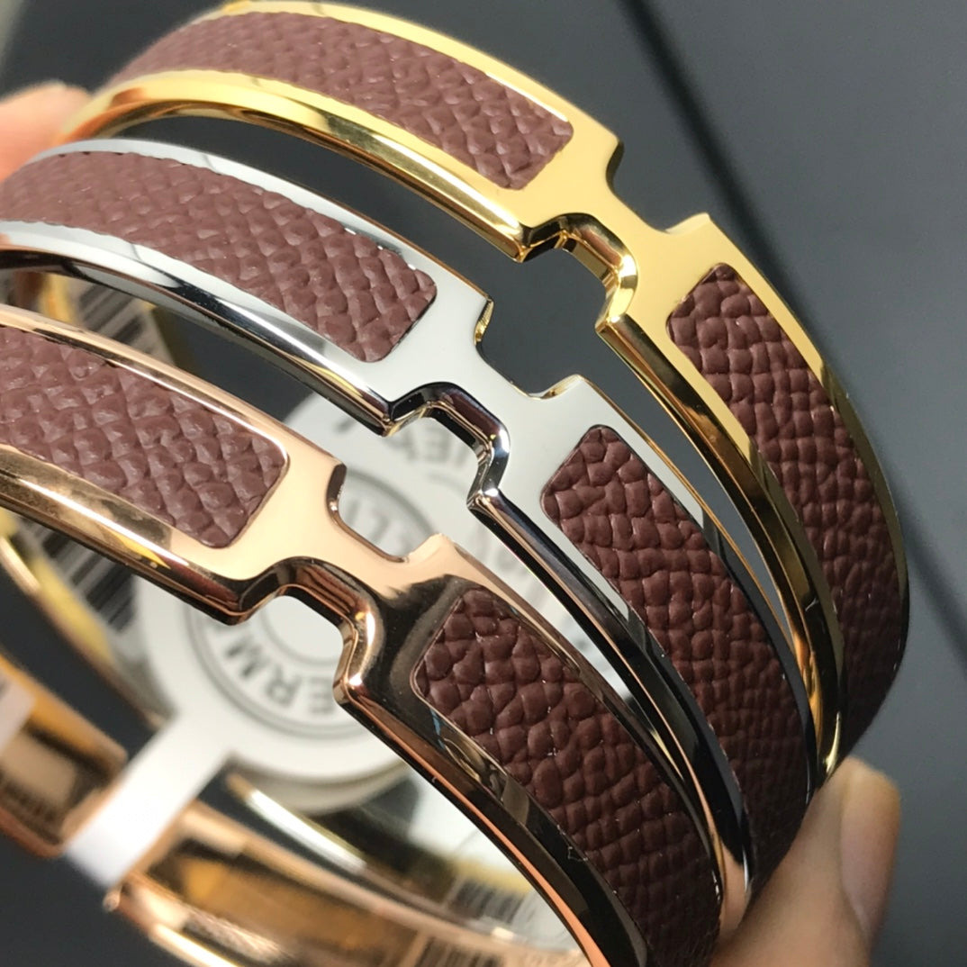 H BRACELET 18MM PINK GOLD BROWN