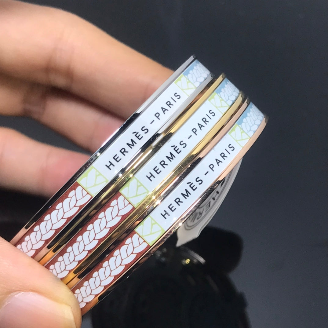 H Enamel Bangle White Gray Bracelet