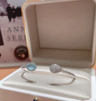 BOHEME AQUAMARINE DIAMOND SILVER OPEN BRACELET