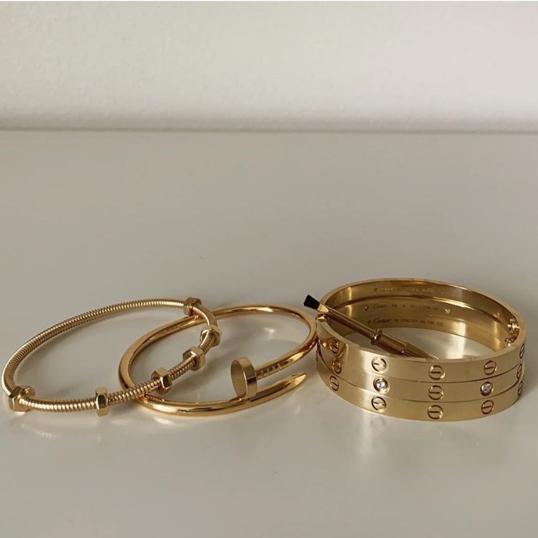 For LOVE bracelet, the usual bracelet sizing rules differ slightly due to the design of the bracelet. We recommends adding one centimeter for a tight fit and two centimeters for a looser fit.