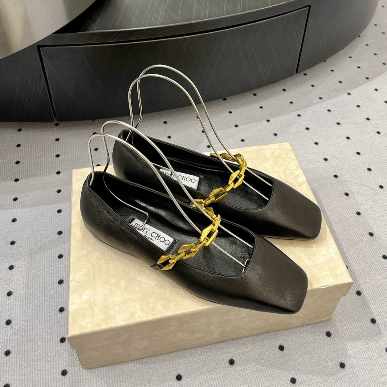 Jimmy Diamond Tilda Flat 10mm In Black Nappa Leather Flats With Chain 591607