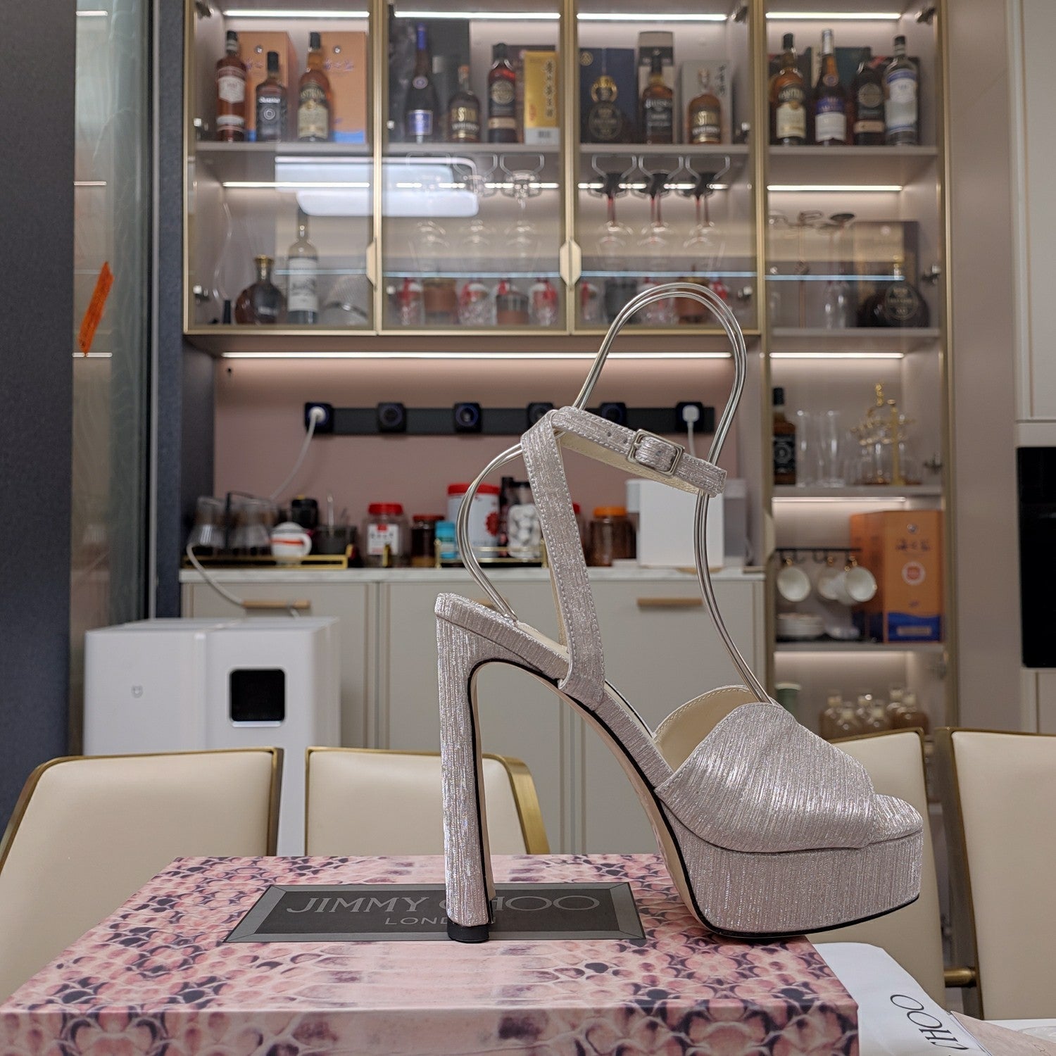 Jimmy 25 Platform Sandal Heels Beige Satin Fabric 240015