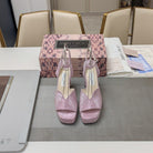 Jimmy 25 Platform Sandal Heels Lace Pink Satin Fabric 240014