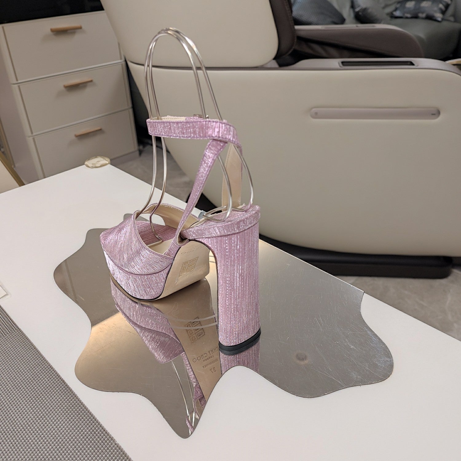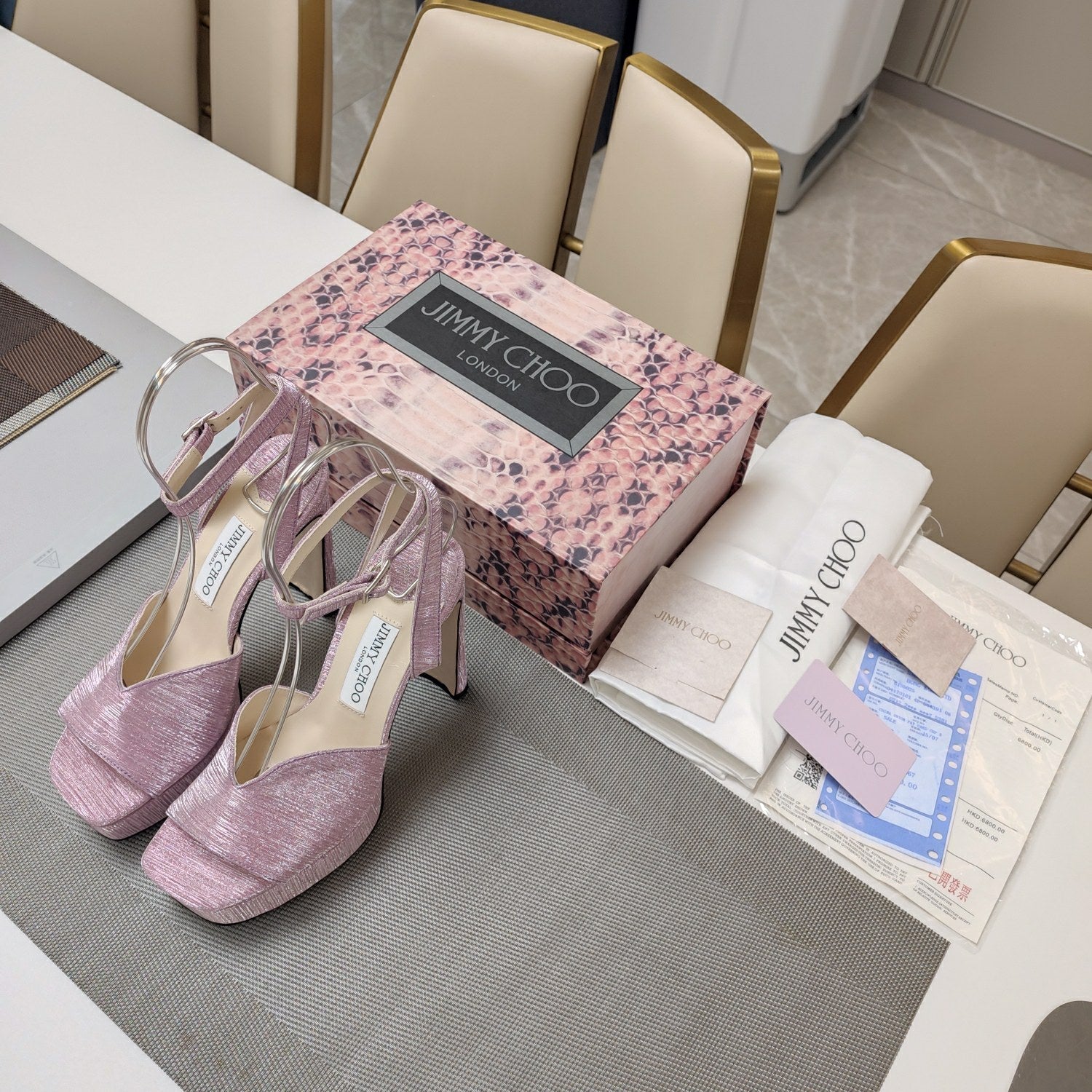 Jimmy 25 Platform Sandal Heels Lady Pink Silk Satin 240012