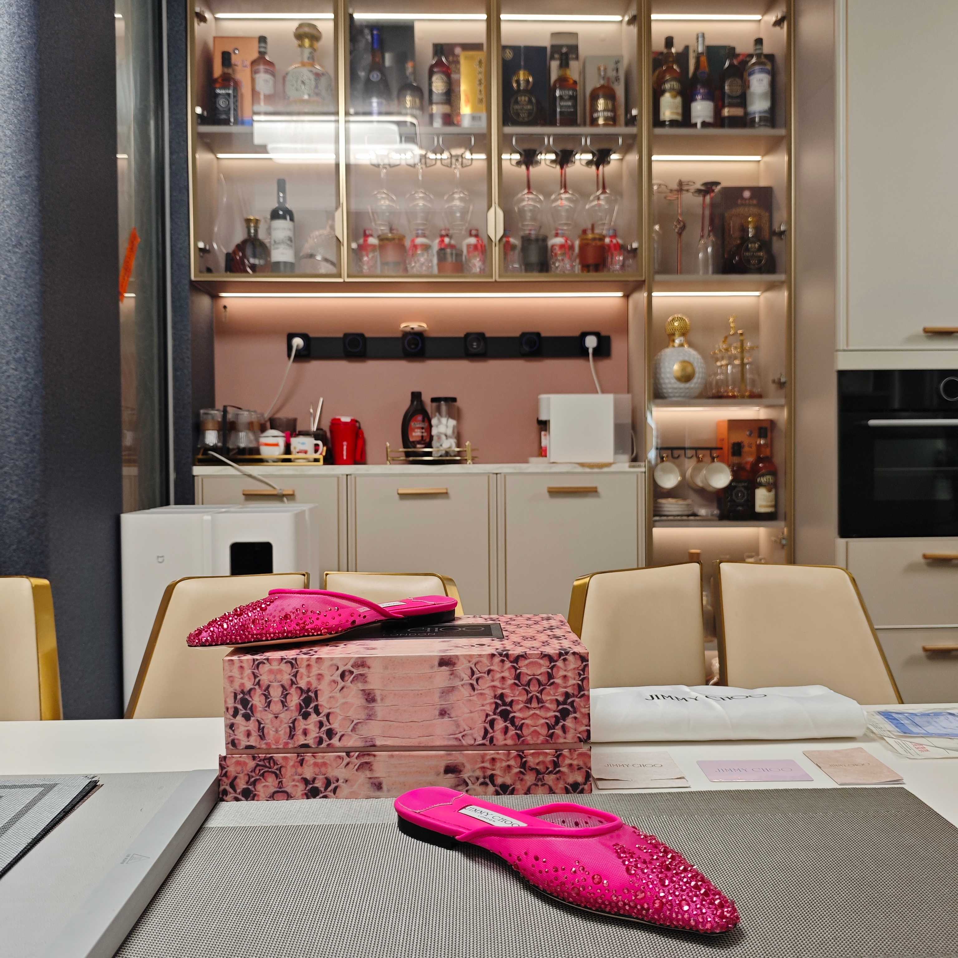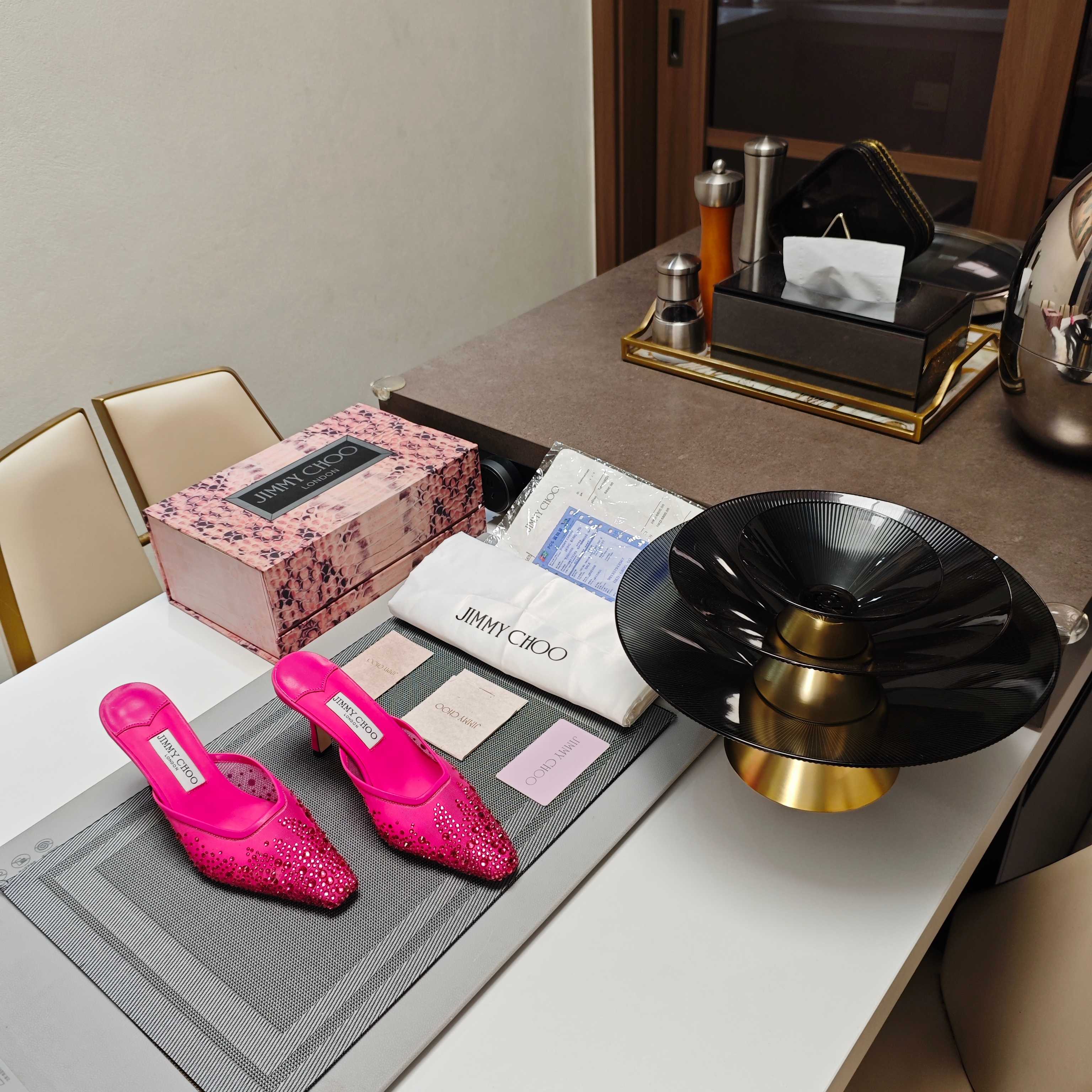 Jimmy 25 Vivi 100 Mule Deep Pink Mesh Gauze 240054