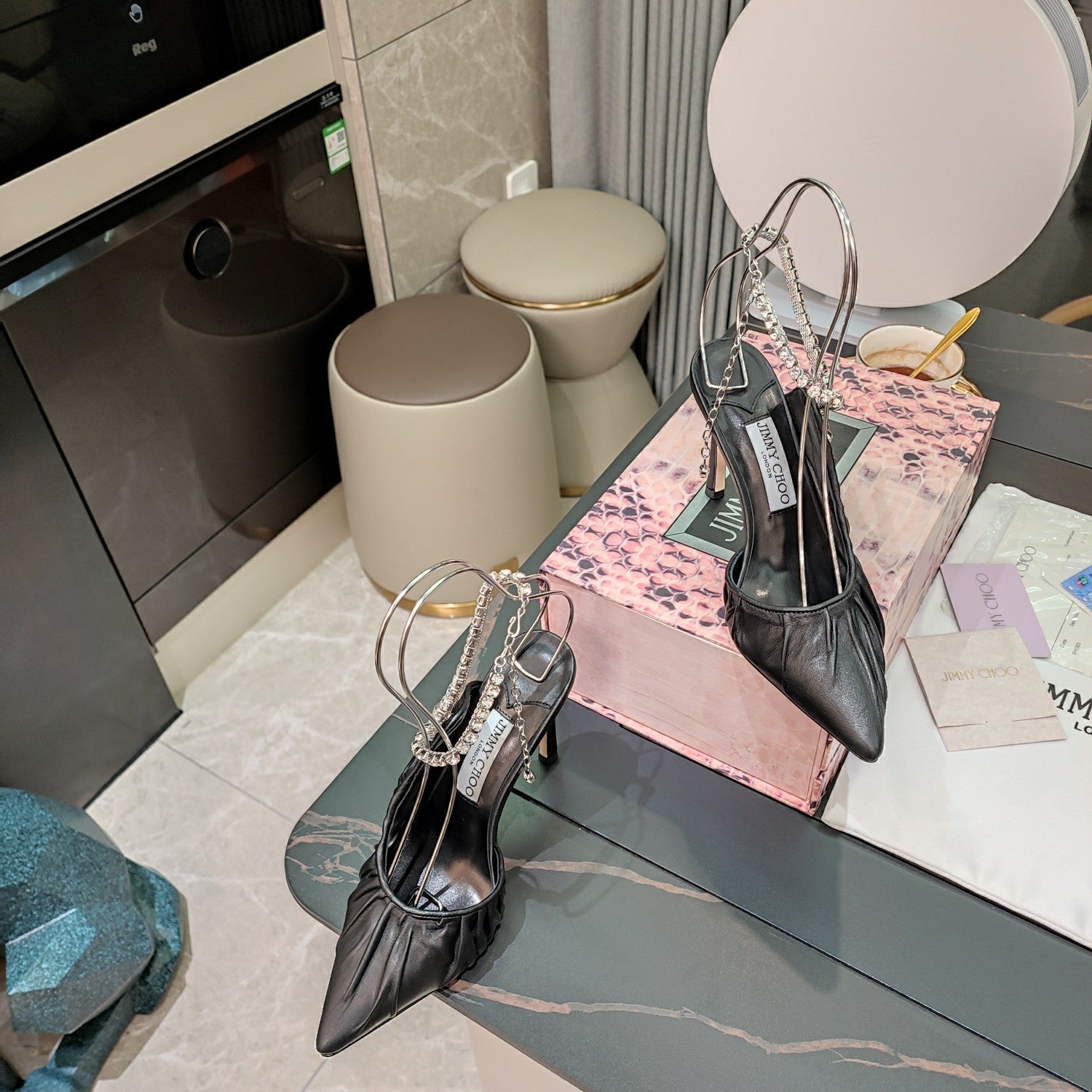 Jimmy 25 Slingback Pump Black Sheepskin 240091