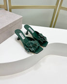Jimmy Skye 65mm In Dark Green Cowhide Mules 597850