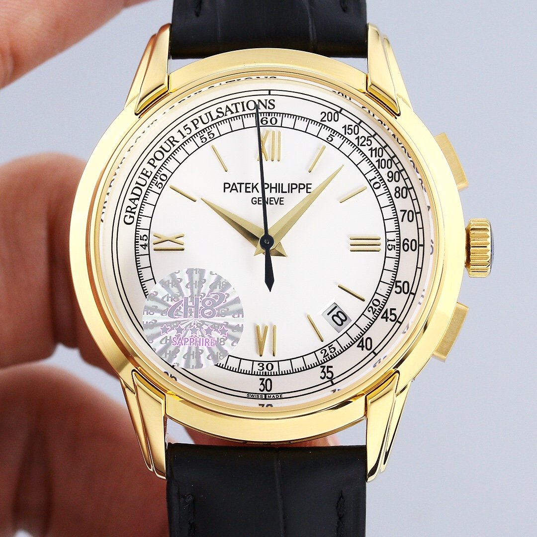 PATEK CHRONOGRAPH GOLD CASE 5975 WHITE DIAL