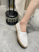 CHLOÉ LOAFERS IN WHITE FABRIC AND RAFFIA