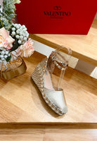 Garavani Rockstud Wedge Espadrilles In Light Yellow Metallic Cowhide And Raffia 852842