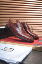 GG Men's Loafer Brown Embossed Cowhide 526094