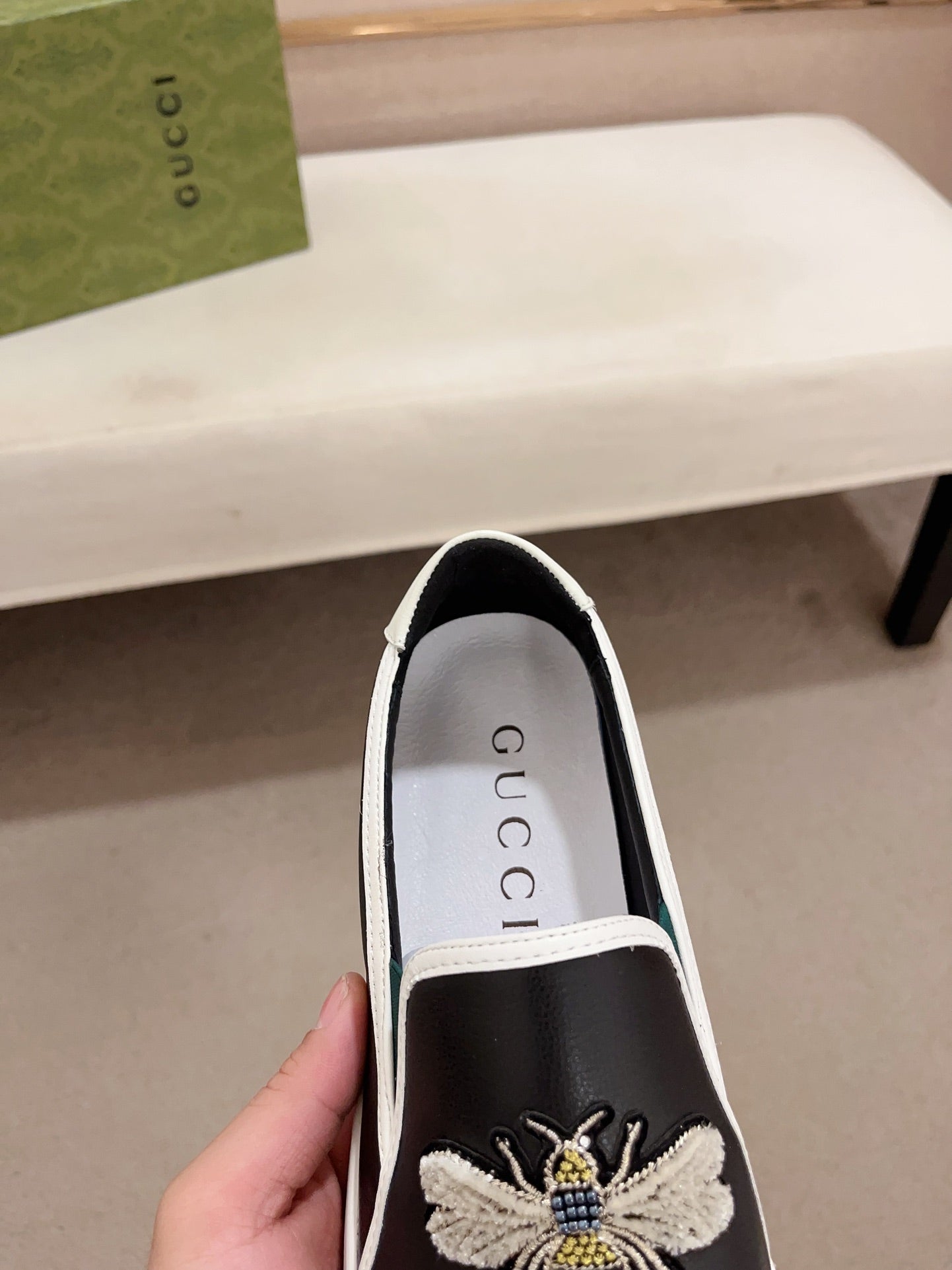 GG Men's Slip on Bee Black Cowhide 533939