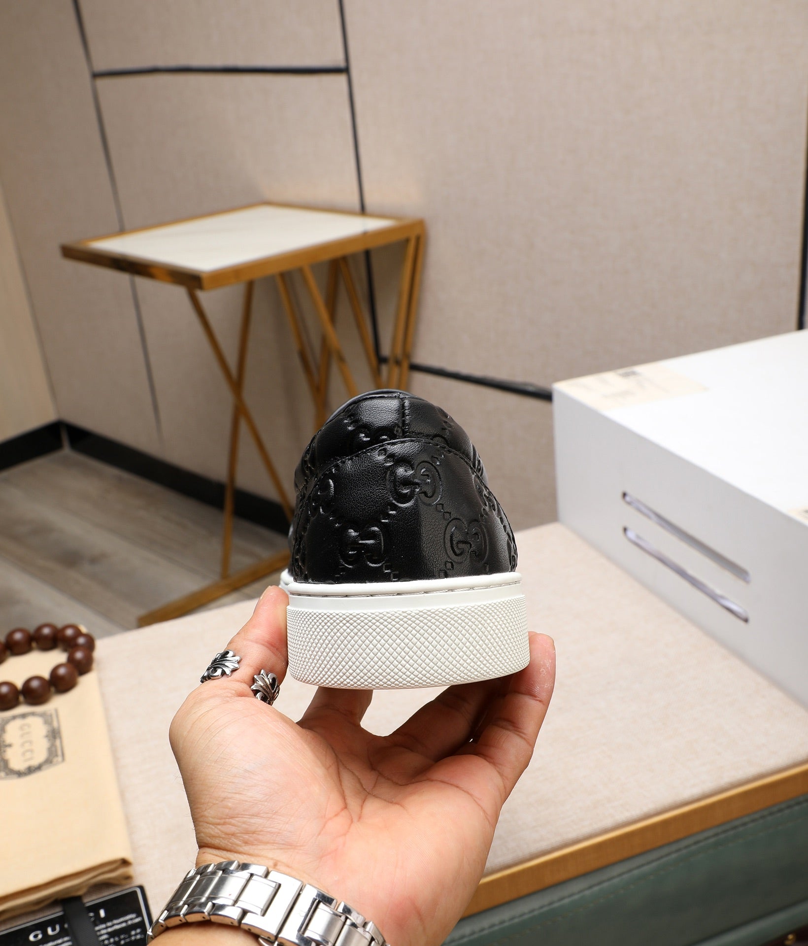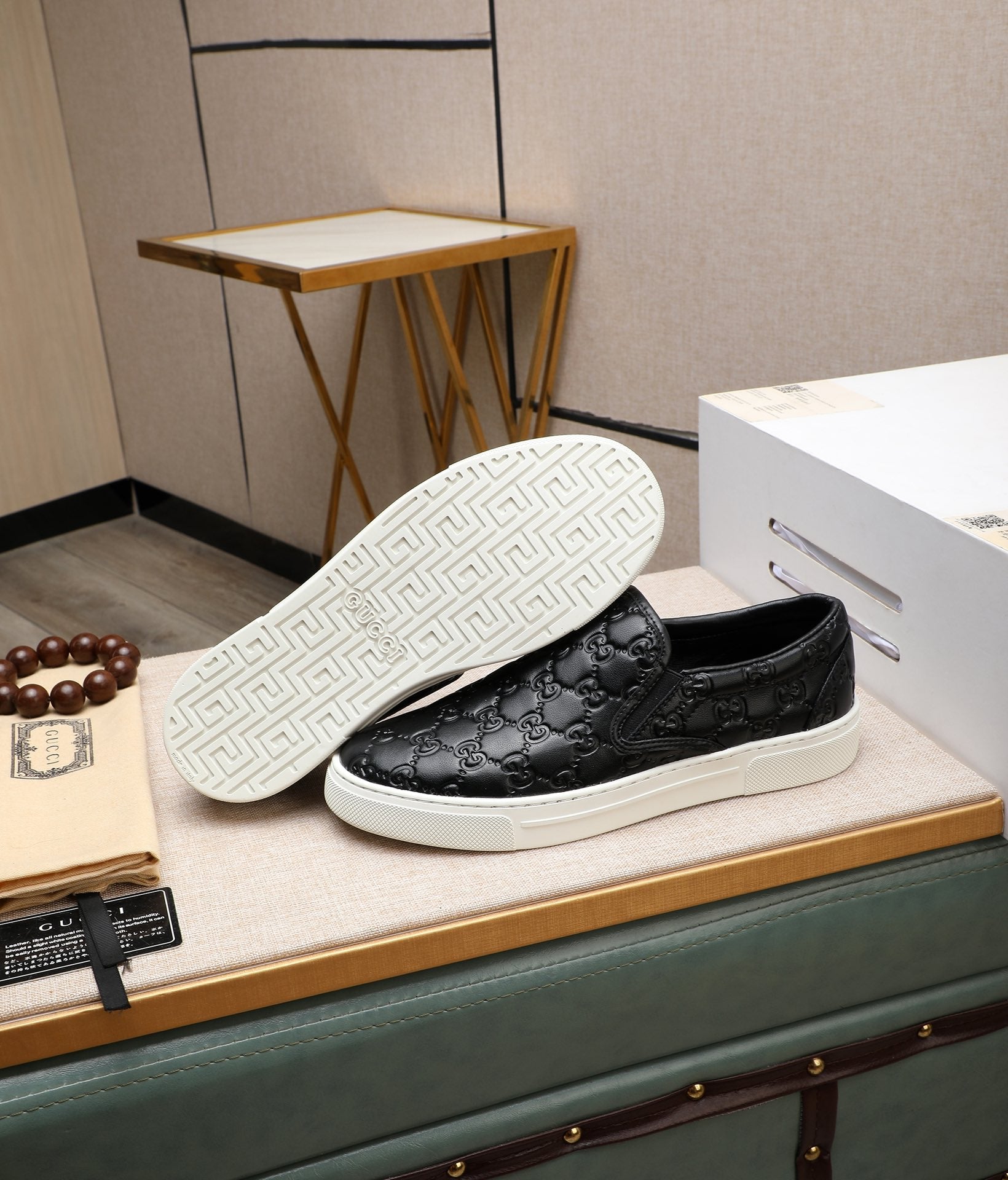 GG Men's Slip on Black Embossed Calfskin 518844