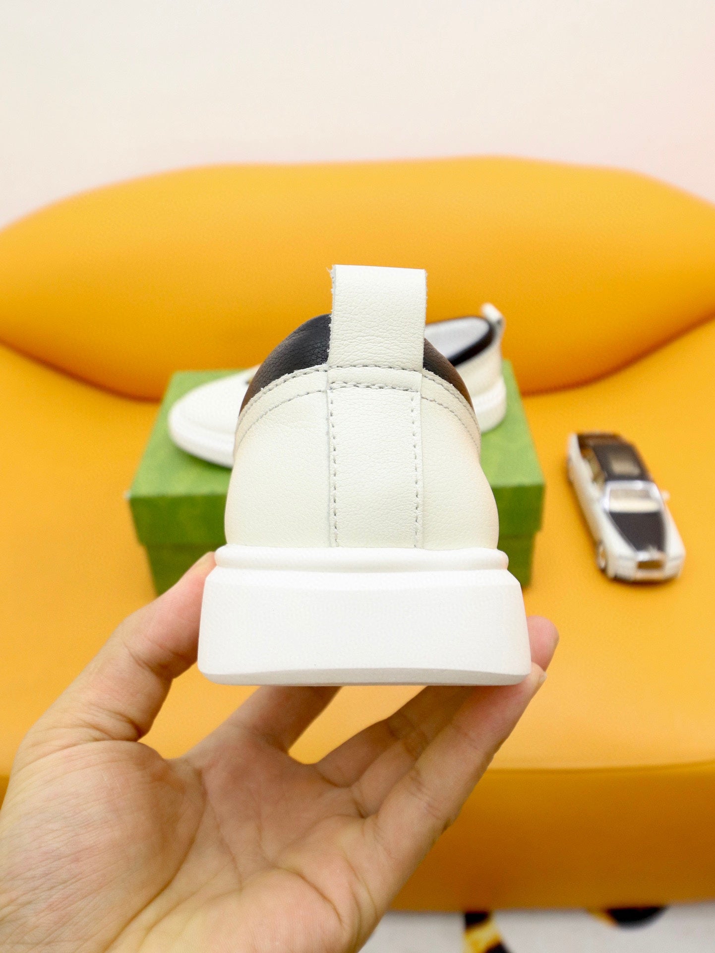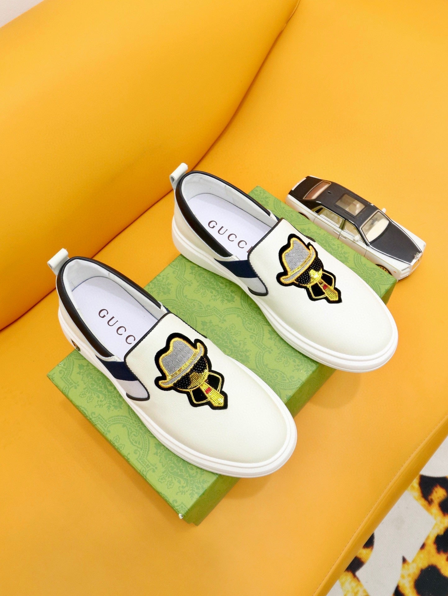 GG Men's Slip on Loafer White Black Cowhide 660094