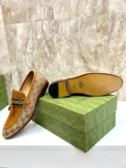 GG Men's Tassel Loafer Light Brown Cowhide Canvas 548743