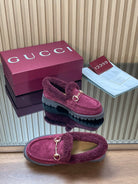 Gucci 2025 Horsebit Loafer Red Suede Wool 563046