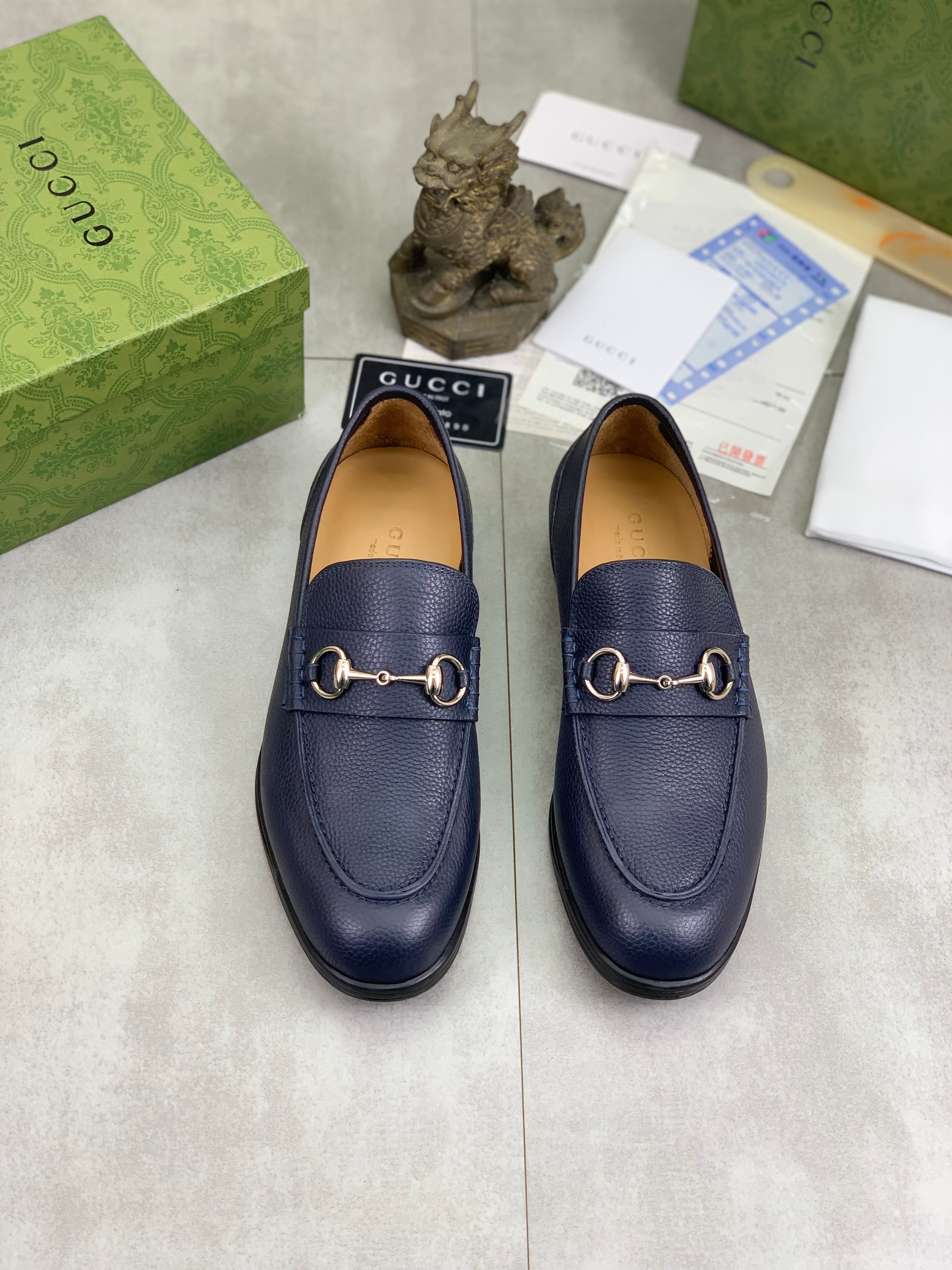 GG Men's Horsebit Loafer Navy Blue Silver Cowhide 524771