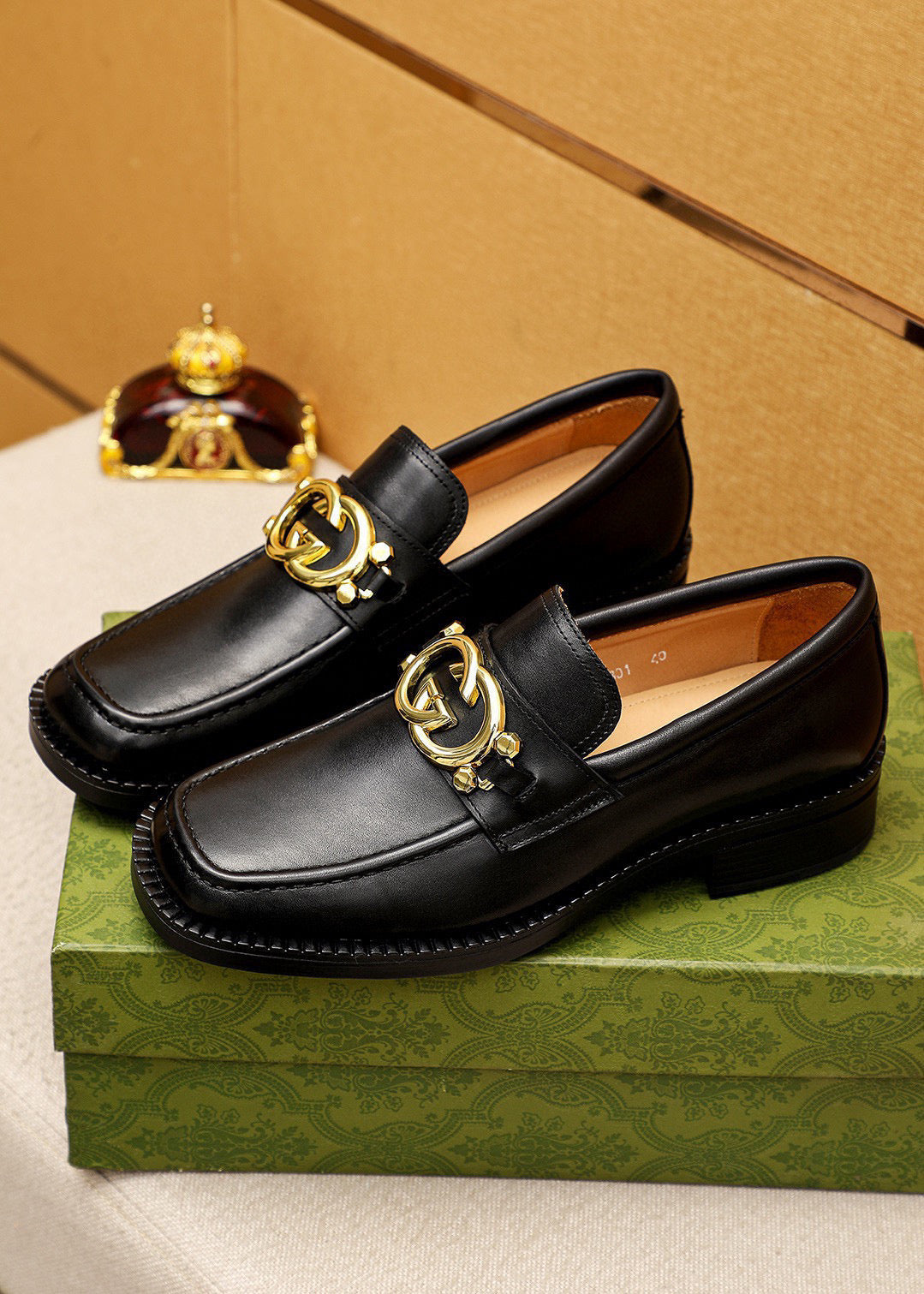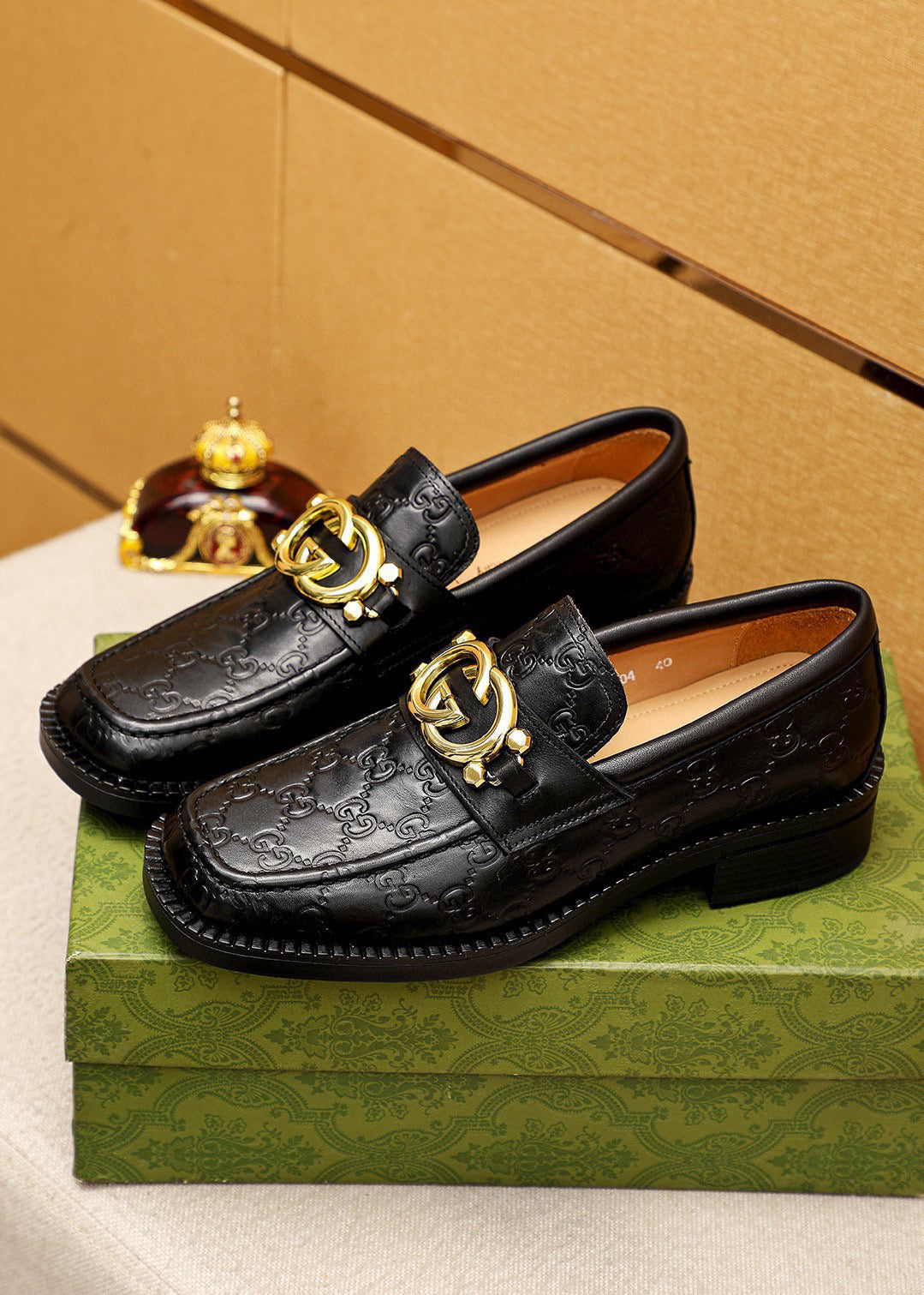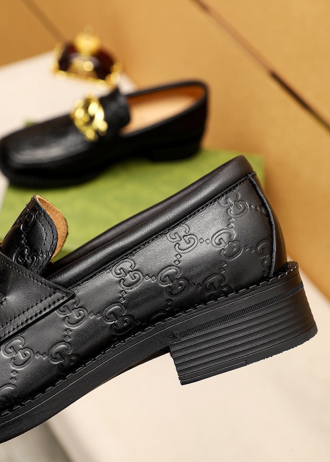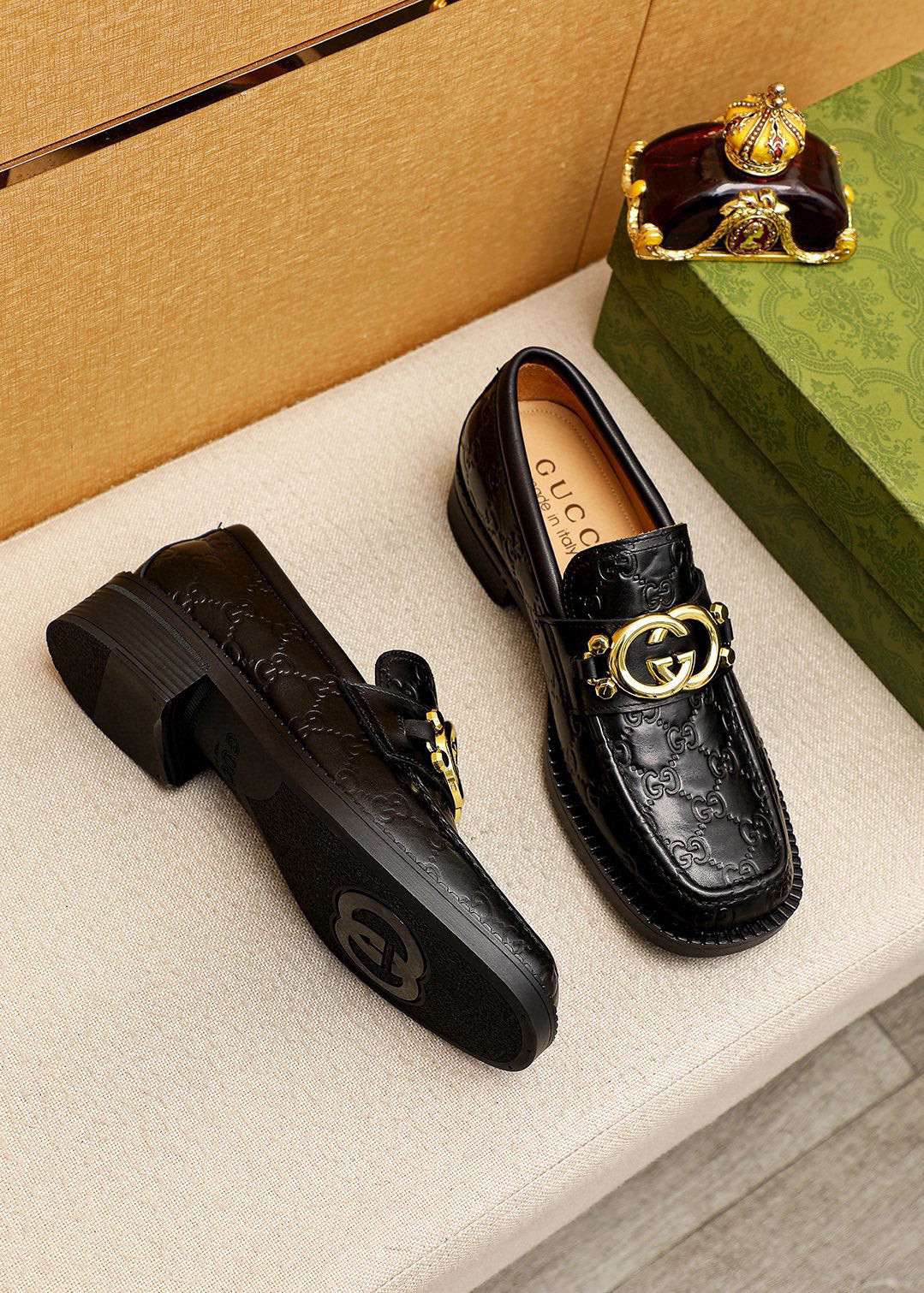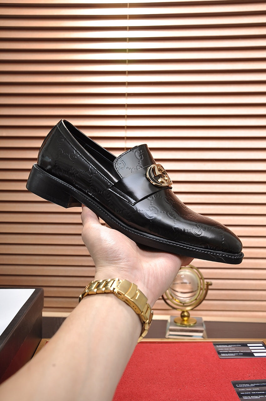 GG Men's Loafer Black GG Gold Embossed Cowhide 736976