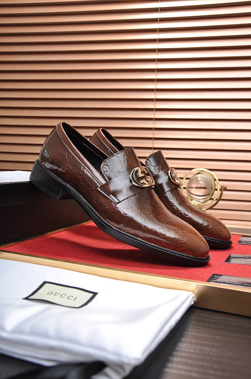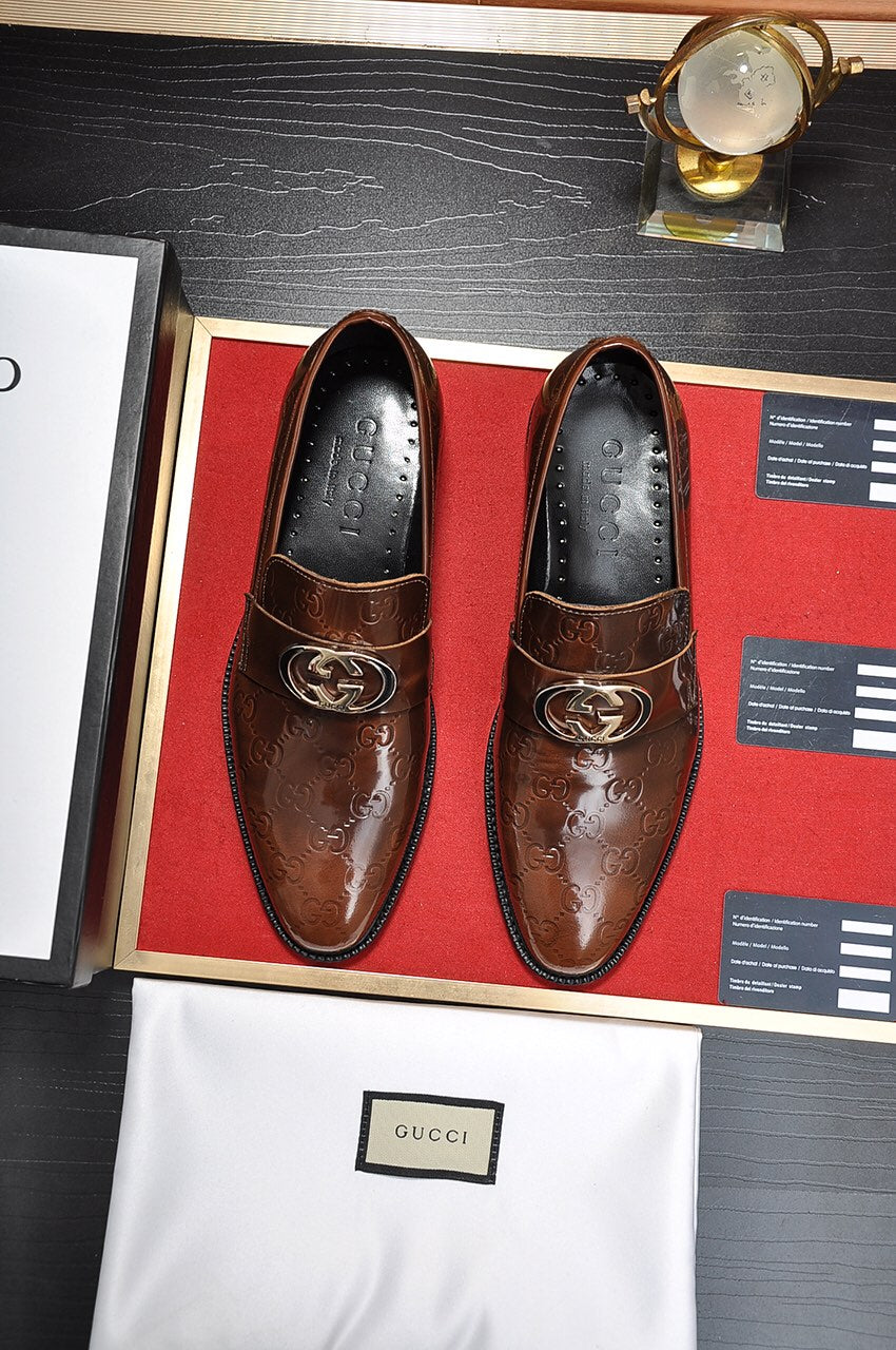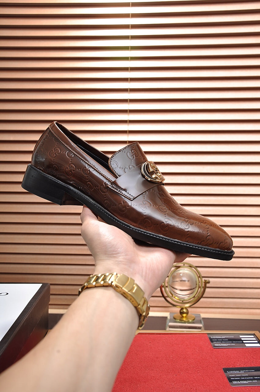 GG Men's Loafer Brown Embossed Cowhide 484786