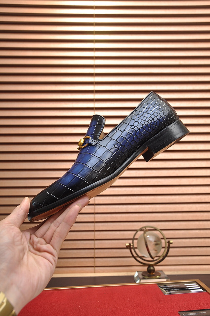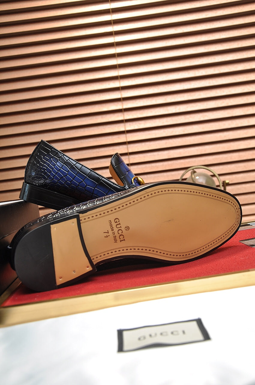 GG Men's Loafer Blue mix Black Embossed Cowhide 295649