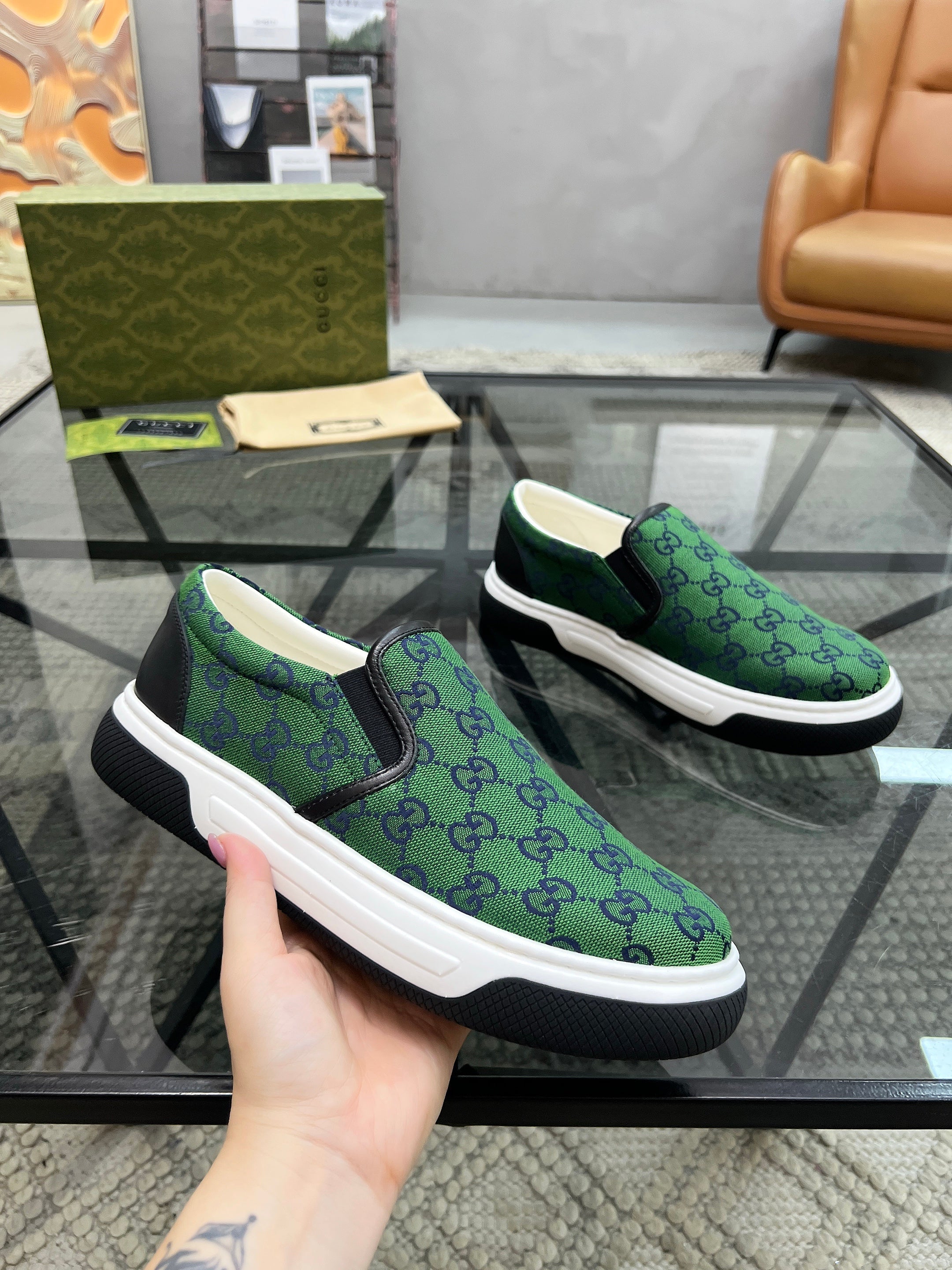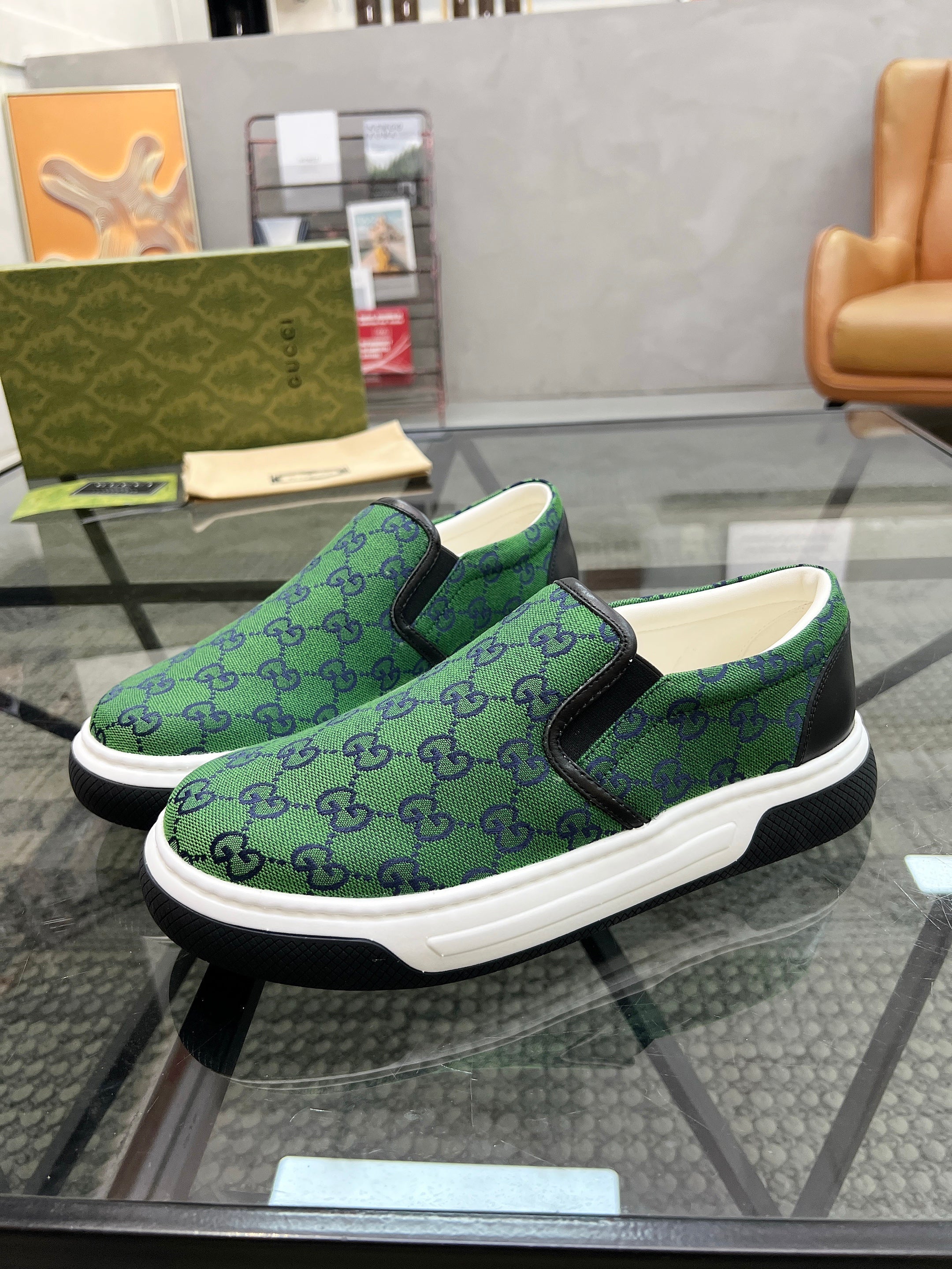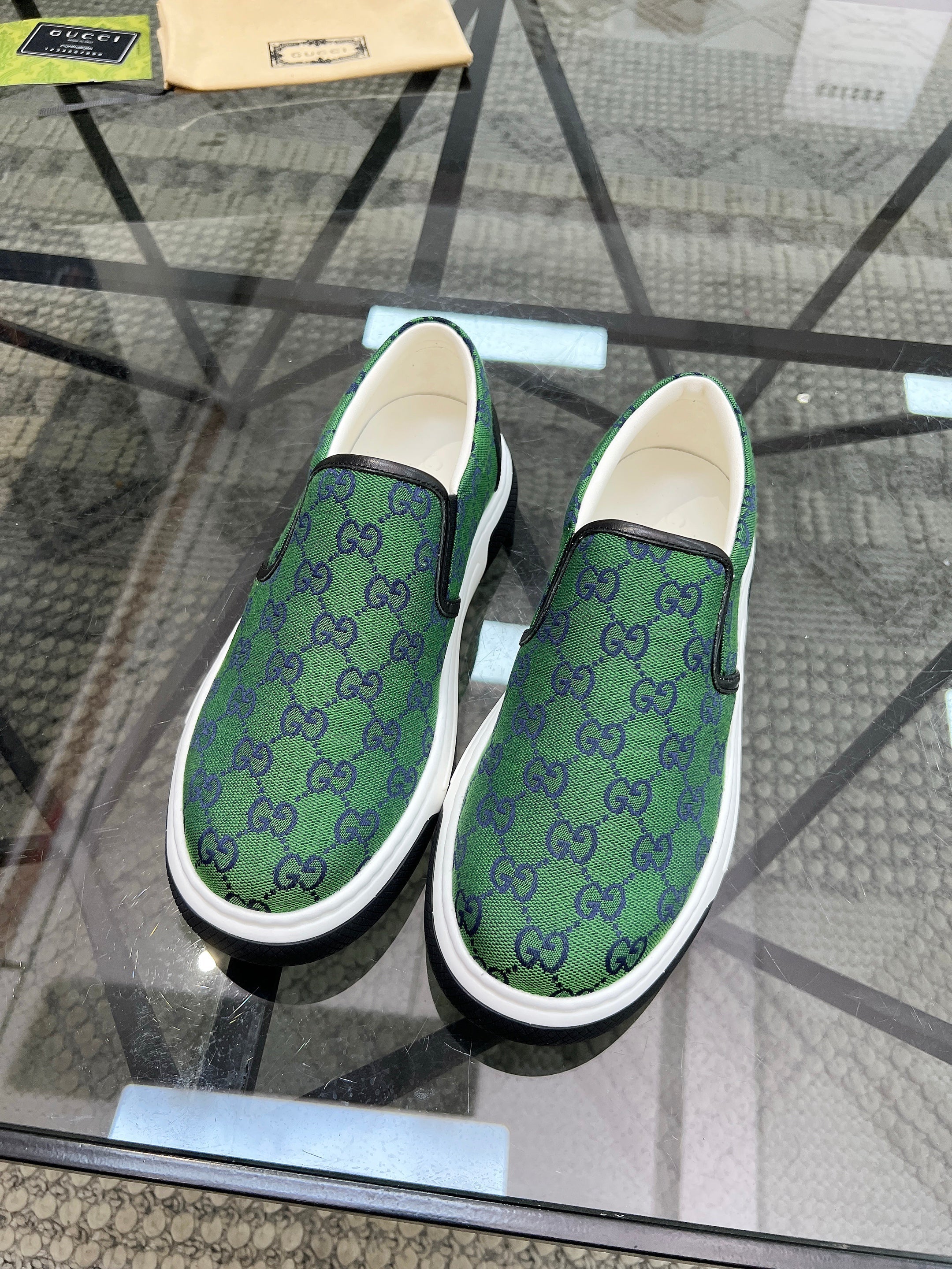 GG Men's Slip on Loafer Green Printed Fabric 721522