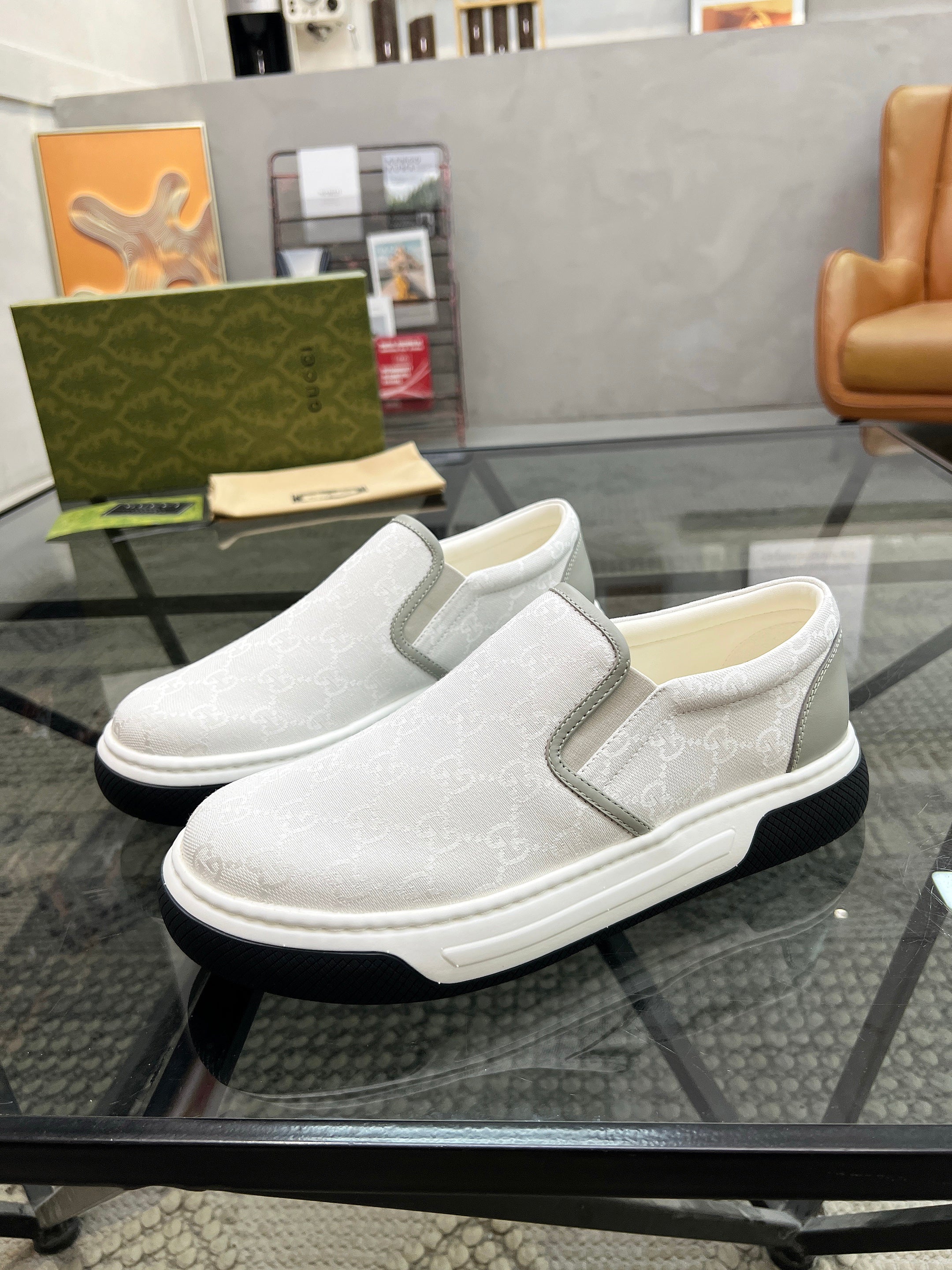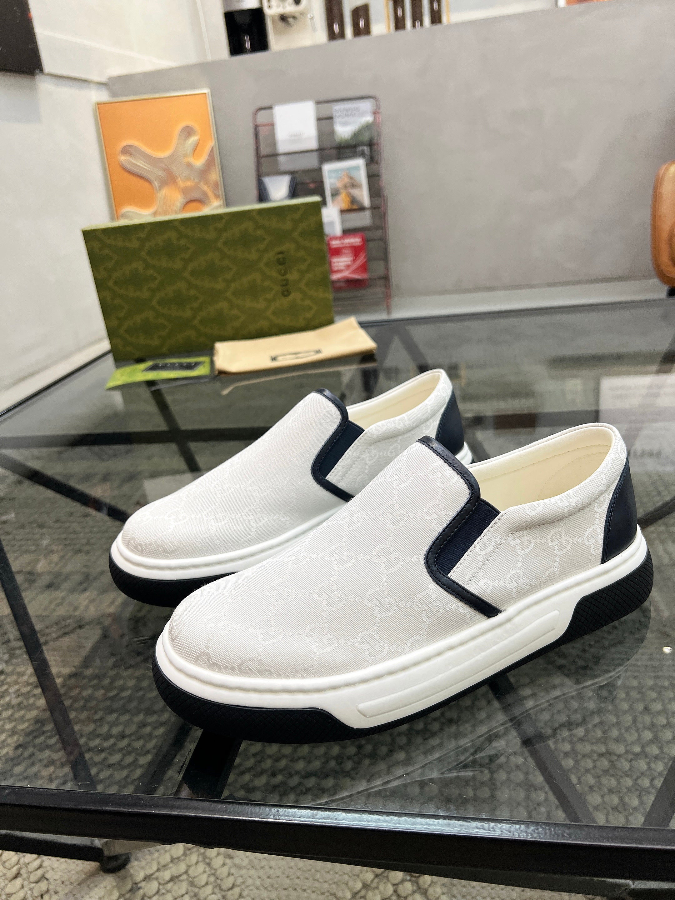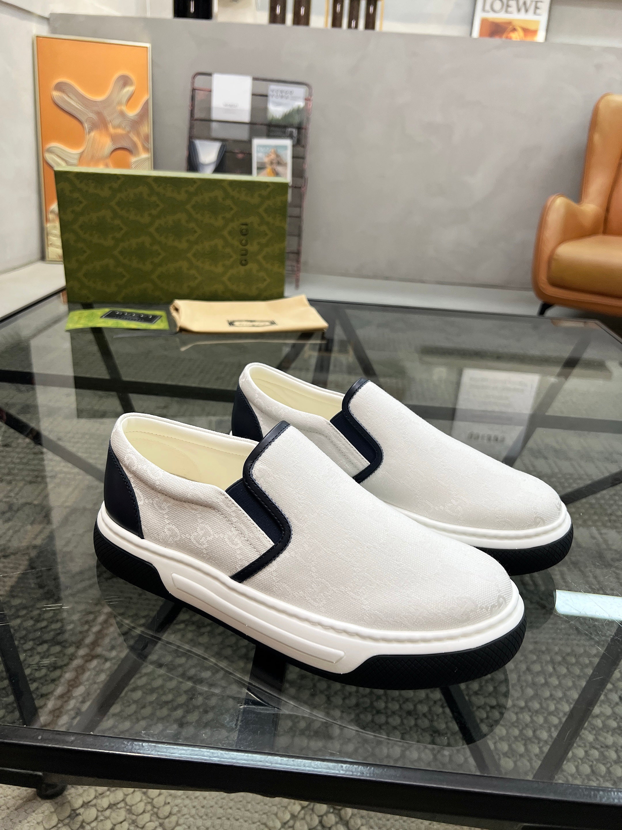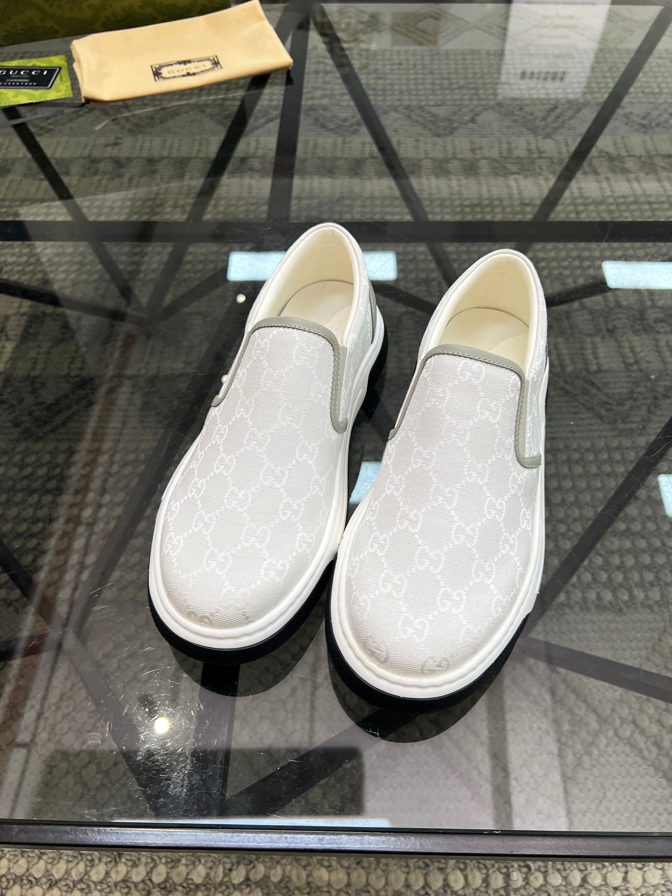 GG Men's Slip on Loafer White Printed Fabric 721530